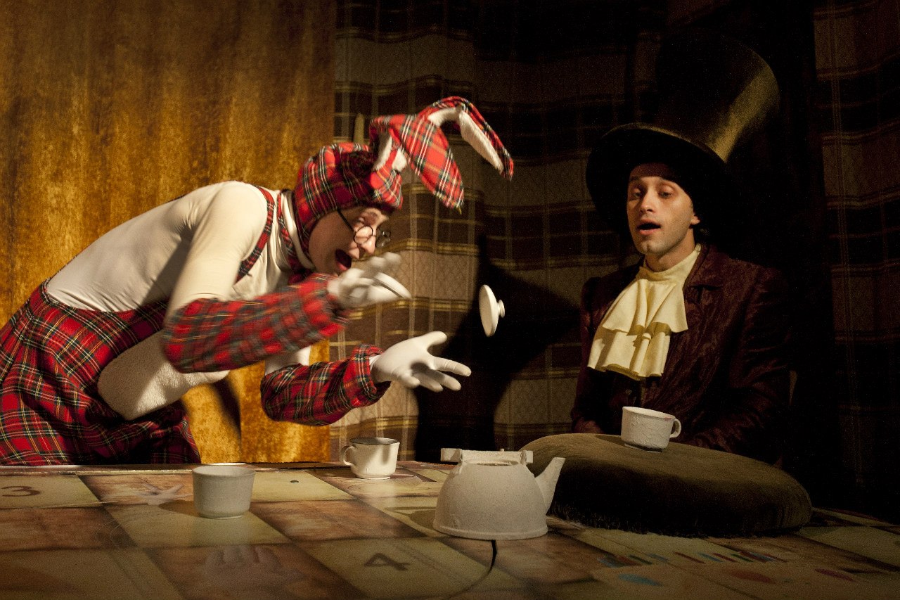 25 июля в маленьком зале театра Karlsson Haus собралась отличная компания, чтобы выпить чай, выучить несколько новых слов на английском и узнать о том, как Алисе удалось из обычной девочки превратиться в королеву. В компанию вошли любознательные театралы от 4 до 9 лет, их жизнерадостные родители, ученый Мартовский заяц, интеллигентный Шляпник, строгая миссис Кап, Мышка Соня, Алиса и другие замечательные персонажи произведений Льюиса Кэрролла «Алиса в Стране чудес» и «Алиса в Зазеркалье». Всех вместе собрал режиссер Алексей Шишов в своей постановке «Вероятно, чаепитие состоится». И чаепитие, без всяких сомнений, уже много раз состоялось, причем настолько хорошо, что получило главную театральную награду – «Золотую маску» в номинации «Лучший спектакль в театре кукол».