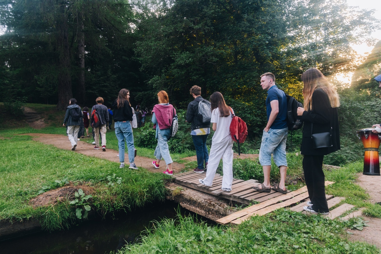 Современный театр уже давно освоил пространство за сценой — музеи и улицы, метро и квартиры, теплоходы и даже поезда. Пришло время отправиться на природу и играть спектакли в лесу и загородных резиденциях. Постановка Ильи Мощицкого «Бегуны» в рамках «Точки доступа» — мини-трип, который начинается в онлайне и ведёт зрителей за главной героиней на природу, в окружение костра, музыки и молчаливых зрителей. Это театральное путешествие по мотивам одноимённой книги нобелевской лауреатки Ольги Токарчук. Спектакль на весь день: представление начинается в 10 утра в Телеграме и заканчивается в девять вечера в Бернгардовке, на загородной усадьбе «Приютино» Ленинградской области.