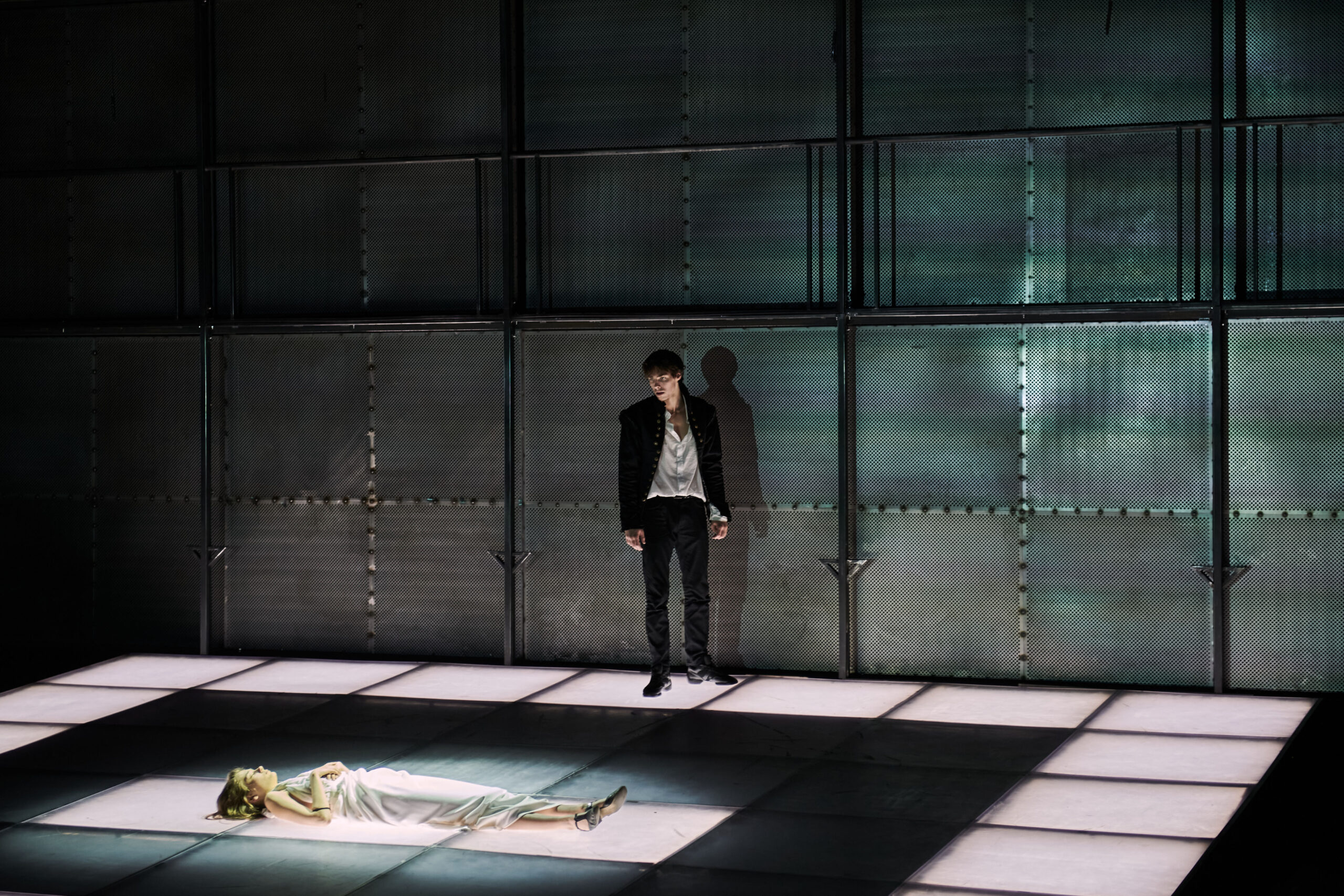 В Рембрандтовском свете на сцене угадывается гитарист с картины Веласкеса, духовник Эль Греко и лестницы Эшера, по которым за раздвижными решетчатыми конструкциями вверх-вниз спускаются и поднимаются люди, оказавшиеся в этом иллюзорном, вневременном пространстве.