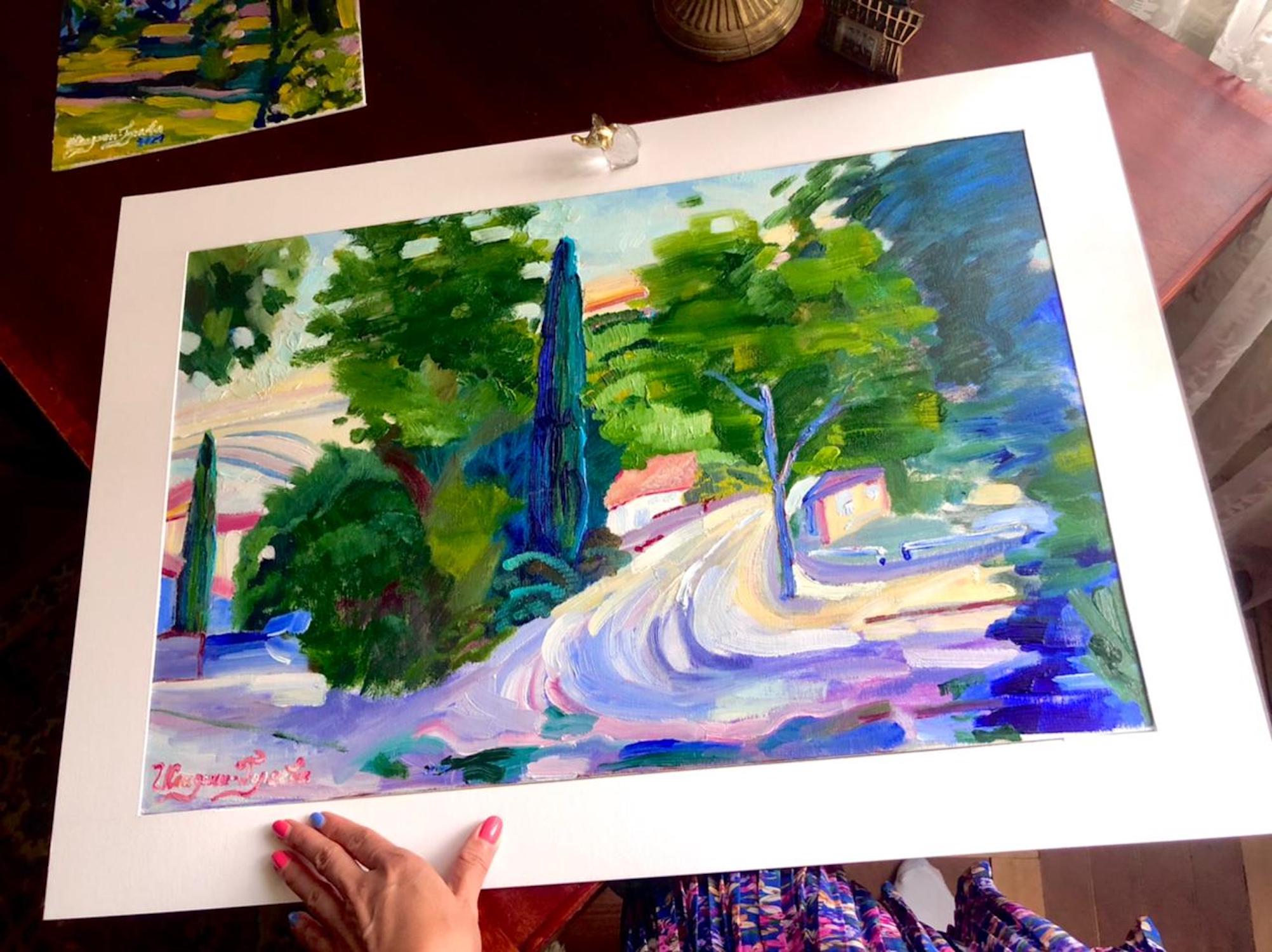 Инна Санджи-Горяева, художник, член ТСХР: «Мое видение современного художника на данный момент, лето 2021г. Жить в современном обществе и быть художником – уже значит быть современным художником, который так или иначе воспринимает события вокруг – события в личной жизни ИЛИ конкретные события в социуме – проживает, пропускает через свой жизненный опыт, сердце и голову — и запечатлевает свою реакцию в арт работах. На мой взгляд художник, который запечатлевает – depicts – свою реакцию именно по темам актуальным именно сейчас в данном временном отрезке для социума – это и есть актуальный художник. С одной стороны это может происходить органично – то есть художника действительной волнует тема — так или иначе находящаяся в топе «новостей» — и это очень искренняя реакция, или художник идет от обратного – берет тему и пытается сделать «актуально». Это не мой путь. Есть же художники, которые запечатлевают свою реакцию на события личной жизни, свои внутренние процессы, происходящие и важные на пути развития своей личности. В ком-то эти события найдут отклик, в ком-то нет, но этой темы не будет в топе «новостей». И это тоже современный художник. И это я. Я живу и каждой своей работой отражаю свою сегодняшнюю реакцию на то, что вижу вокруг. Я ставлю свои внутренние переживания и реакции как основную концепцию своего творчества. Да, мой основной жанр сейчас это пейзаж. И как итог моего текущего этапа личностного развития как современного художника является серия работ СОЧНЫЕ ДНИ. И неожиданно как результат работы как и над техникой, так и над сюжетом в целом вы видите современные пейзажи, где образы природы подаются в свободной фигуративно — условной передаче. И возможно желание проявлять эту свободу приведет меня далее в абстрактный экспрессионизм.»