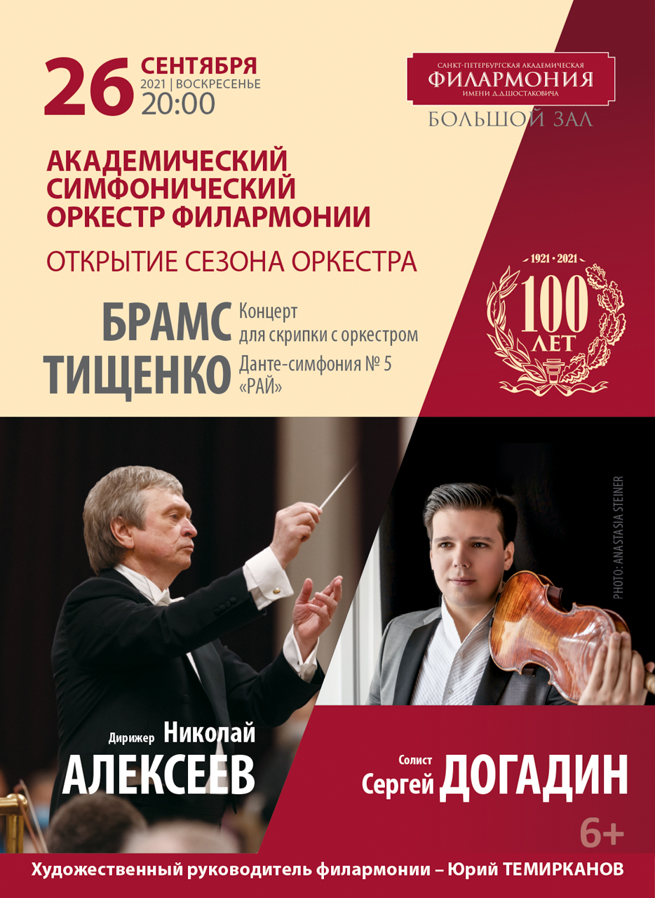 Академический симфонический оркестр Петербургской филармонии открывает новый концертный сезон под управлением народного артиста России Николая Алексеева программой из сочинений Иоганнеса Брамса и Бориса Тищенко 26 сентября. Как и предыдущий, этот сезон пройдет под знаком 100-летия филармонии. Традиция исполнения академической музыки в ее залах восходит к XIX столетию, когда здесь выступали Ференц Лист, Гектор Берлиоз, Рихард Вагнер, Антонин Дворжак, Антон Рубинштейн и другие крупнейшие музыканты своего времени. Однако собственно филармония (на тот момент Петроградская), первая в нашей стране, была учреждена 13 мая 1921 года, 12 июня состоялся первый в ее истории концерт.