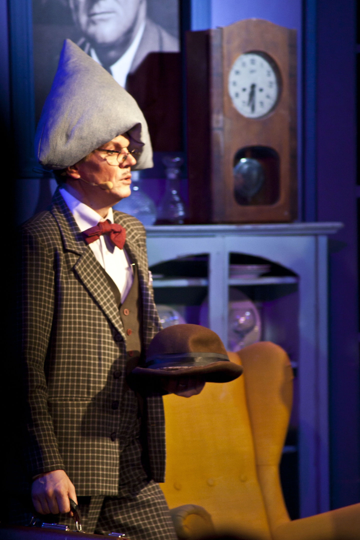 Изюминку спектаклю придают эпизодические персонажи. Пластический хирург Эйнштейн-Франкенштейн (Дмитрий Петров) с подушкой в виде шляпы Наполеона на голове невероятно комичен. Полицейский О’Хара (Николай Балобан), который мечтает стать драматургом, — мастер эпизода с его забавной манерой речи и гротескным исполнением.