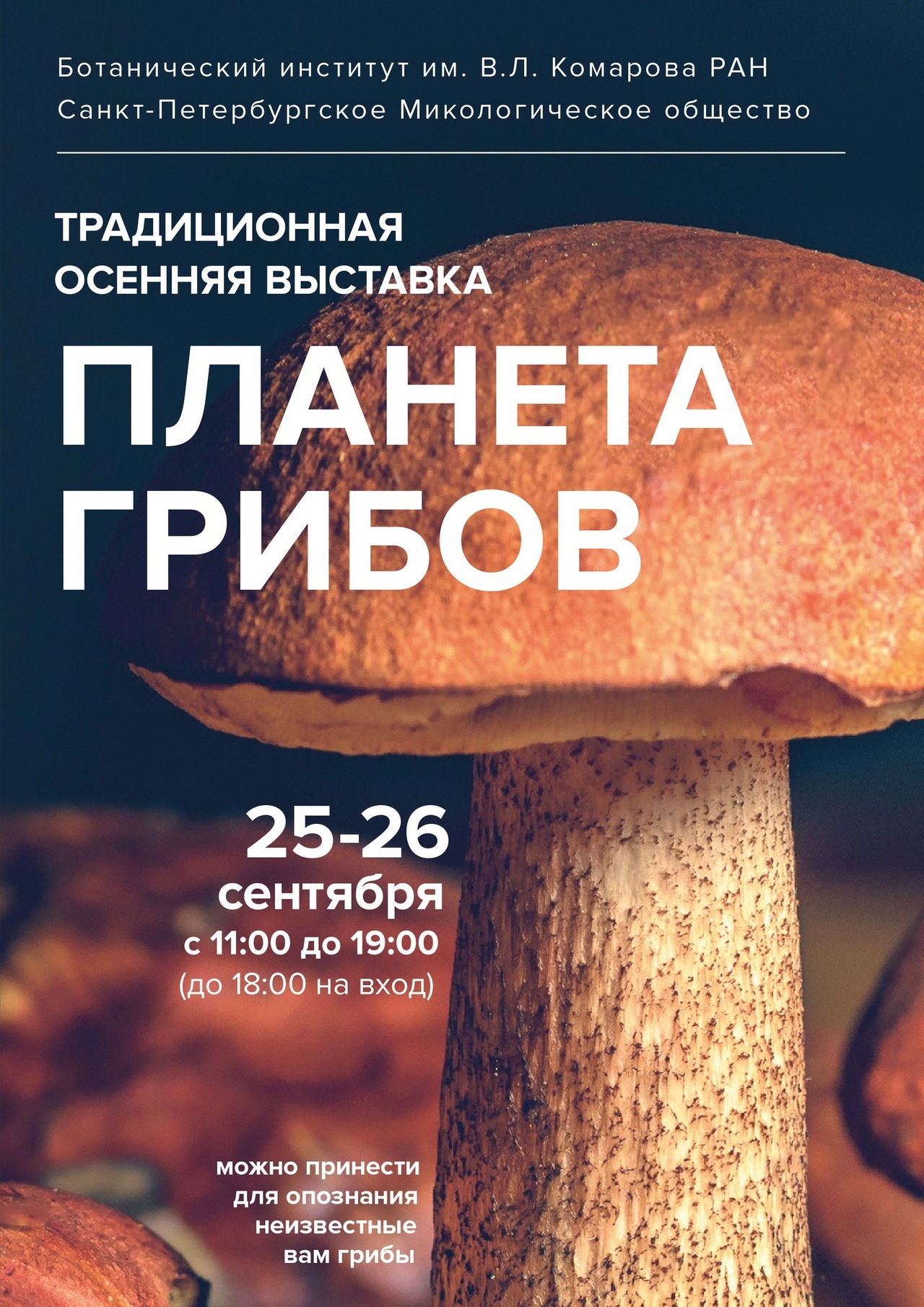 25–26 сентября состоится традиционная осенняя выставка Санкт-Петербургского микологического общества Планета грибов. Приглашаем всех любителей «тихой охоты» с 11:00 до 19:00 в выставочный павильон Зеленый домик! Вход до 18:00.