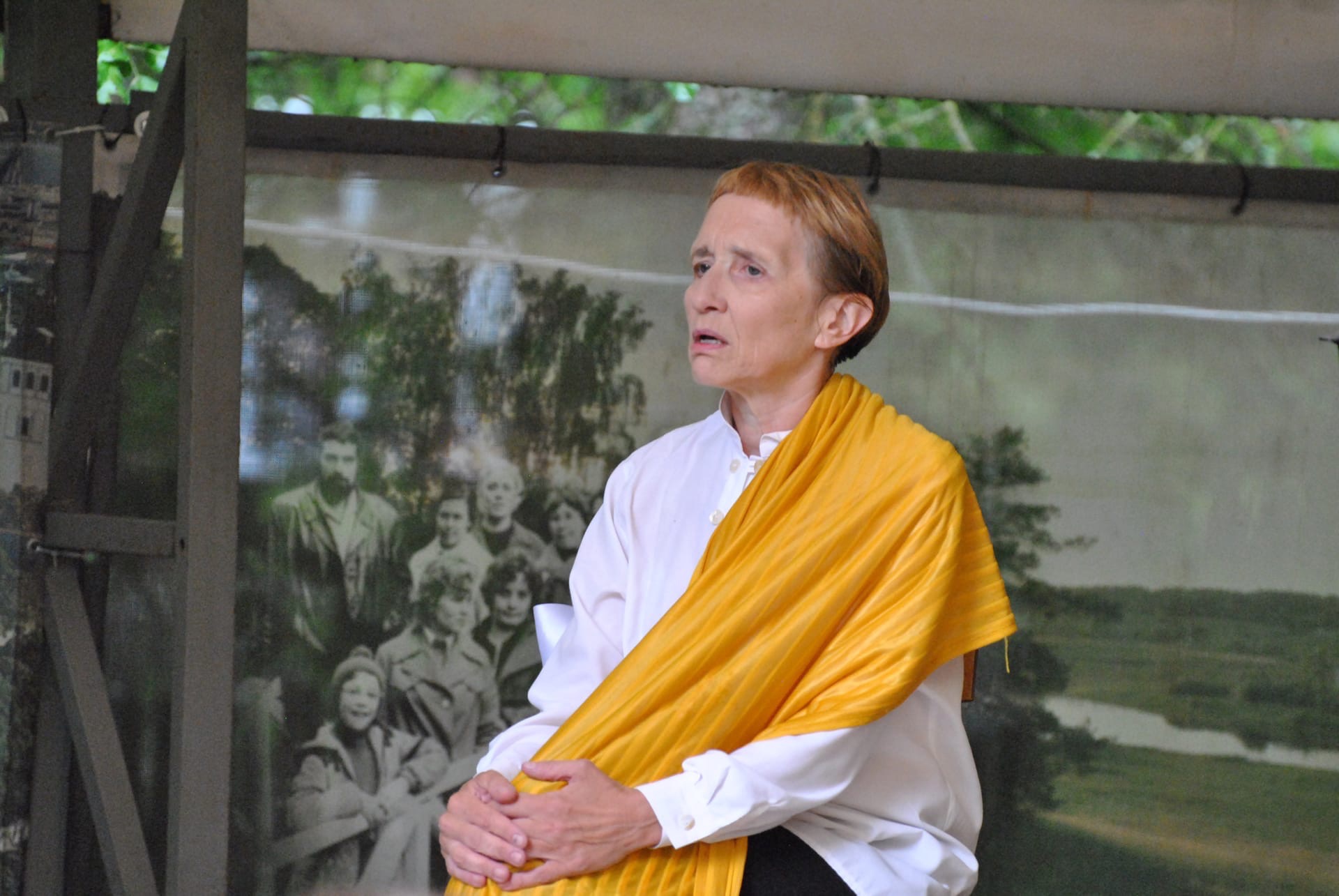 Да, очень. За три недели до фестиваля мы получили приглашение. Вот так, неожиданно: «А не хотите ли вы приехать?». Наш театр был уже в отпуске, но мы собрались и поехали. Нас сразу предупредили, что играть предстоит на улице, в шатре, и, если пойдет дождь и будет бить по водоотталкивающей ткани, то зрители актёров не услышат. Я не хотела играть с микрофоном, но, когда стало понятно, что собирается дождь, сказала: «Ладно, я буду прыгать через шнур как заяц, но это лучше, чем если меня не будет слышно». Мы настроили звук, я пошла переодеваться, и в этот момент началась гроза, и во всей деревне вырубился свет. Ни микрофона, ни света у нас не будет. Ко мне подошла маленькая худенькая девочка-организатор, и сказала: «Конечно, можно дать отмену, но можно и подумать». Потом ко мне подошёл Андрюша Левченко, который ездил в Пушгоры в качестве администратора, и сказал: «Ты знаешь, я так мечтал сказать фразу: «Вы не поверите, но к вам приехал Театр Дождей». И тут меня отщелкивает, и я говорю: «Андрюша, ты её скажешь. Иди говори». И я пошла работать без света, без звука, на таланте. Народ в зале валился от смеха на моменте «Не расходитесь! Здесь вы сидите в тепле. Здесь светло и тепло. И уютно. А на улице холод, и ветер, и дождь. Черт знает, что творится на улице«. Потому что вокруг шатра в это время была гроза, ураган, не просто чёрт знает что, а три раза по чёрт знает что. А потом было очень классно на «Волшебной скрипке» Николая Гумилёва: «Духи ада любят слушать эти царственные звуки», и я вижу уже: молния бьёт, и выжидаю с открытой рукой, потому что знаю: сейчас будет гром. Грохотнуло, и я дальше пошла: «Бродят бешеные волки по дороге скрипачей». И на «Двенадцати» было здорово: