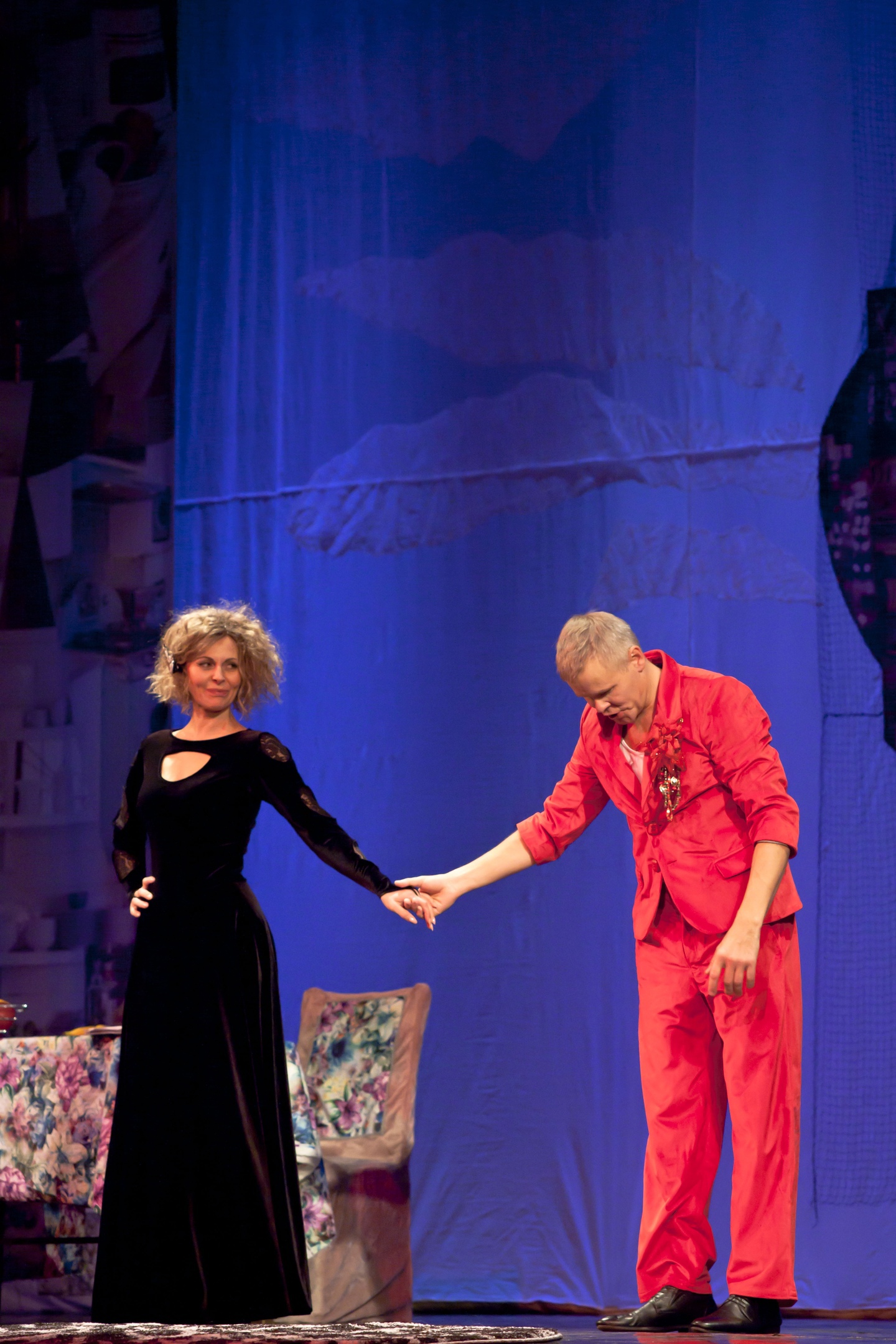 И, наконец, главное действующее лицо комедии положений — Брет, которого Гидди окрестила Антонио – это также и самый яркий персонаж спектакля. Его роль сыграл актер, снявшийся в фильмах «Челночницы», «Семейный детектив» — Илья Соколовский. Актер создал отмеченный юмором и одновременно вызывающий сочувствие образ. Как и героиня фильма «За бортом», Антонио теряет память и учится жить в новой реальности, которую для него открывает Гидди. И если в начале он еще пытается позвонить в полицию, чтобы его спасли, то ближе к финалу готов парить от счастья, особенно, когда приходит осознание, что его полюбили не за статус, а как мужчину.