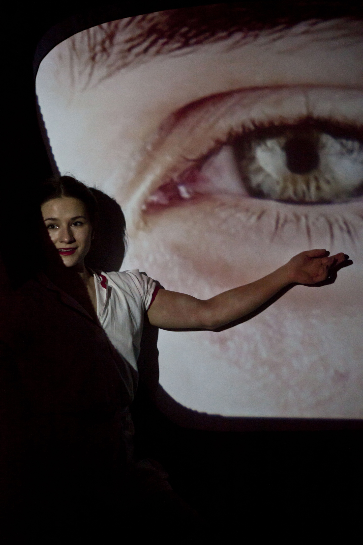 Для первого танца влюбленных была организована комната с крутящимся диско-шаром. И для любящих жизнь, мир вокруг и людей, таких разных и таких похожих, была обустроена комната, в которой не только зрители смотрят на арт-объект, но и арт-объект смотрит на них. В меняющиеся глаза людей можно смотреть бесконечно, испытывая любопытство и желание познать человека. И жажда знания, и символ бесконечного двигателя символически были объединены во вращающейся инсталляции в стилистике картин Эшера.