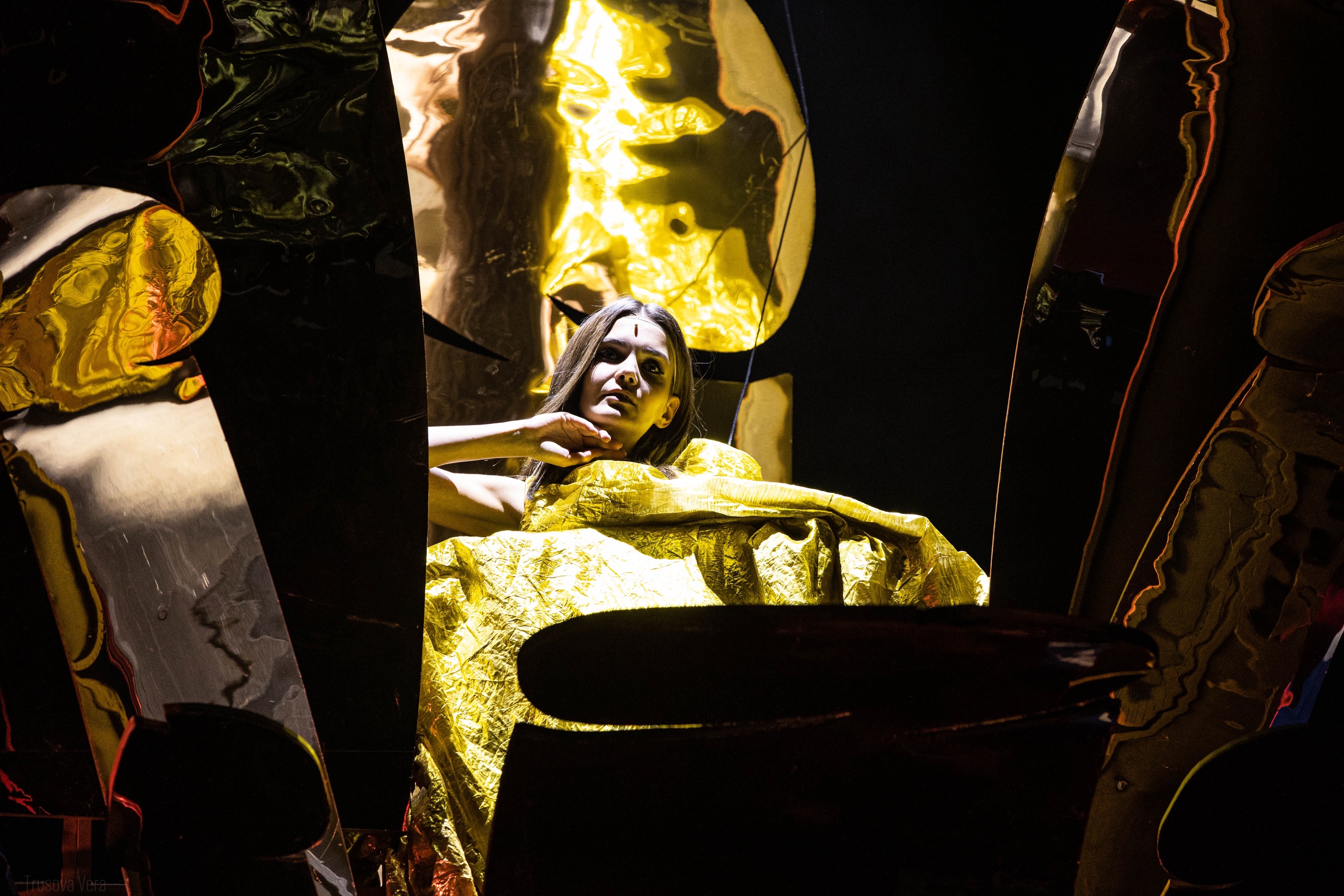 Физическая подготовка, как и всегда у артистов этого театра, на высочайшем уровне — они легко забираются на все декорации и без видимого напряжения выполняют непростые трюки. Герои произносят свои монологи то на самых высоких точках сцены, то повисая на колоннах, то лёжа на полу, то балансируя на балконе на одной ноге.