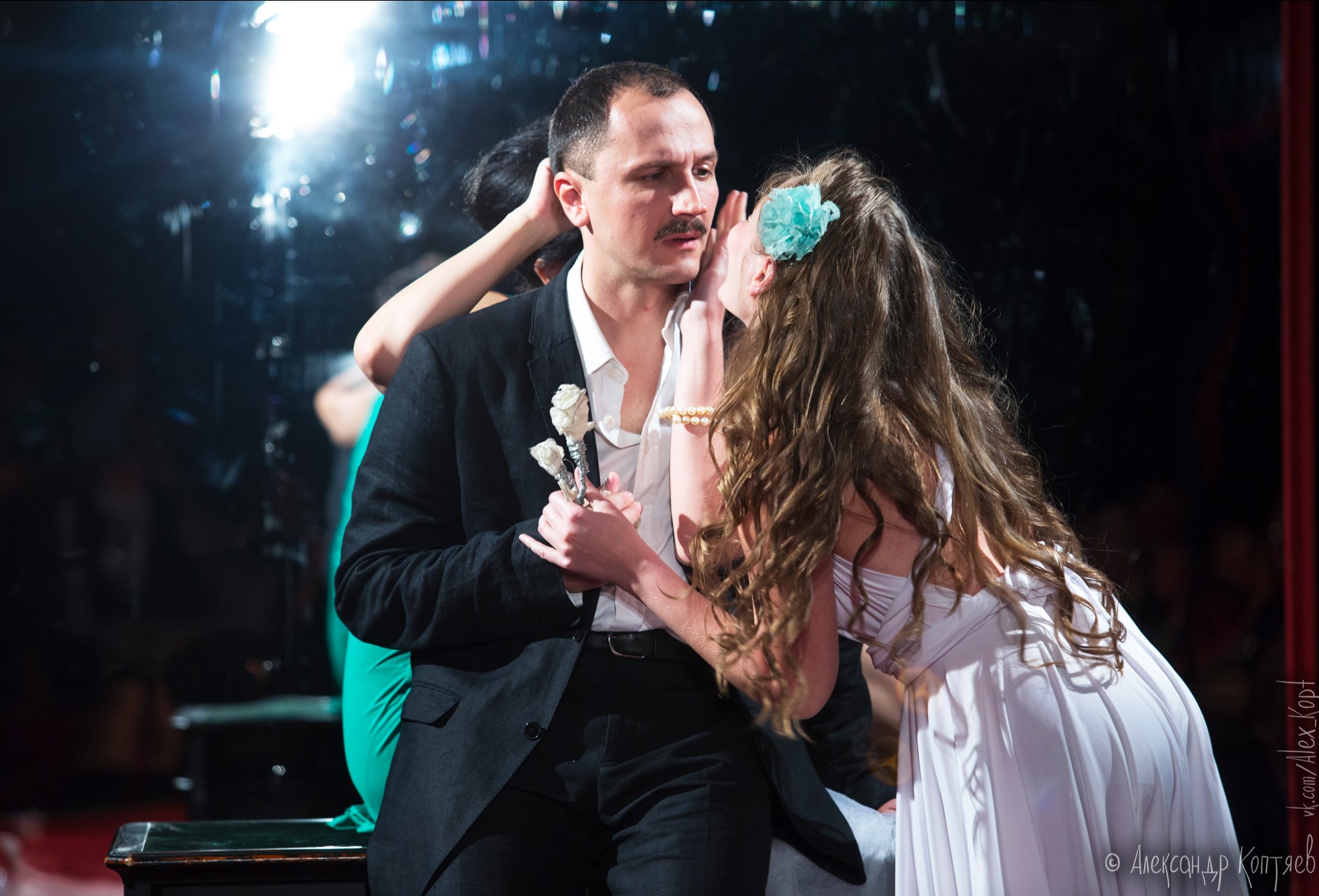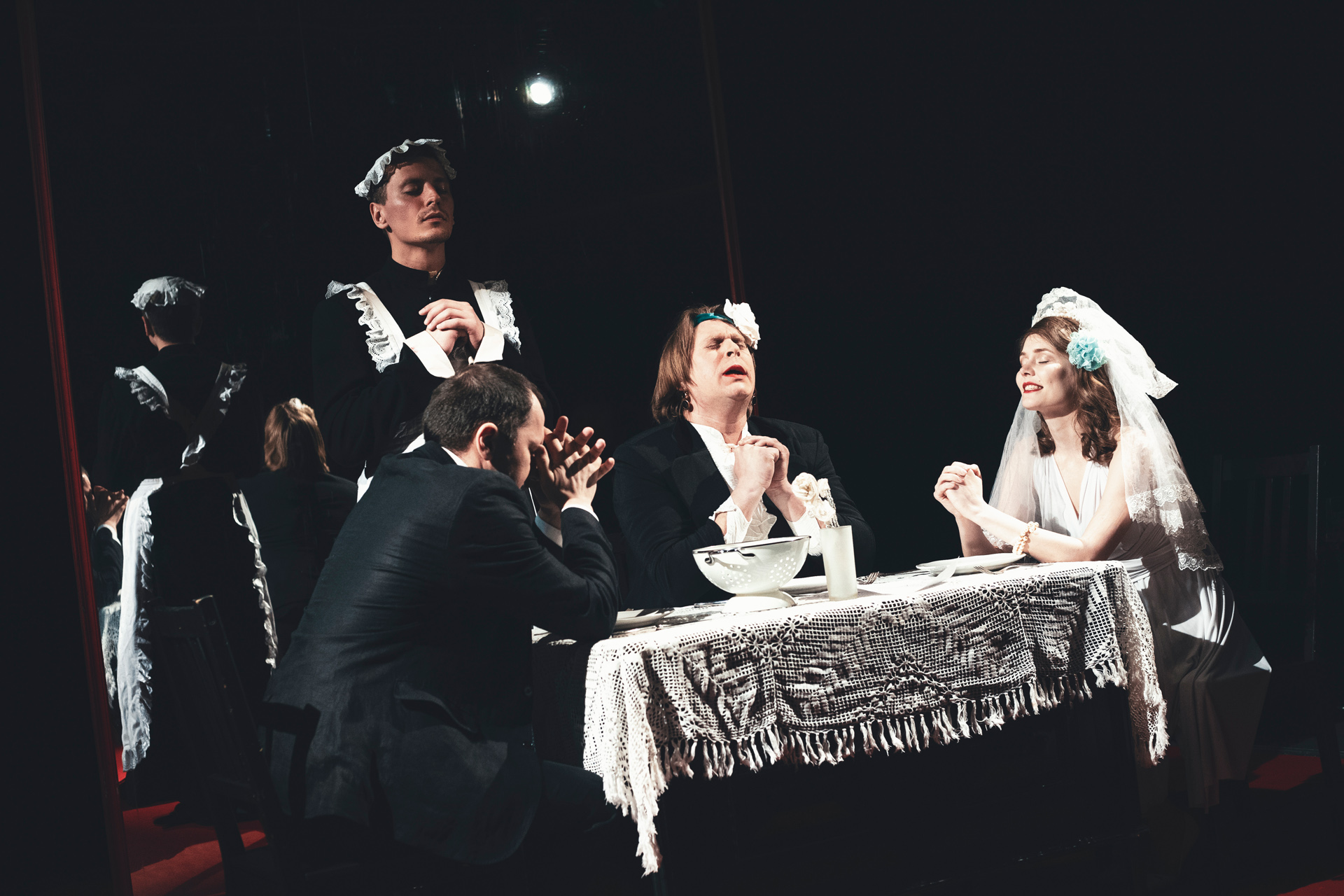 Зеркала во всю стену, лампочки, стол, несколько стульев. Красный пол, в центре которого очерченные краской контуры двух тел. Зрители ступают по ковровым дорожкам, которые убирают перед началом спектакля. Перед нами обычный мужчина средних лет — Марчелло Клеричи (Роман Ушаков). У него стандартная внешность и обычная манера держать себя в обществе. Ничего не выдаёт в нём ненормальность. Он не одиночка или безумец. Он — государственный служащий итальянского фашистского правительства. В нынешнем режиме ему нравится не всё, но он ему предан. Марчелло вхож в высшие круги власти, ему доверяют высокие чины, его зовёт на встречу даже сам Министр (Андрей Зарубин), который давит на героя всем своим обликом, манерой говорить, взглядом, поворотом головы. Он предлагает, а точнее приказывает, выполнить миссию в Париже – выйти на связь с антифашистом профессором Квадри (Олег Попков), бывшим учителем Марчелло и завоевать его доверие. Марчелло не очень этим доволен, но вместо того, чтобы взять перерыв несколько дней и обдумать предложение, он немедленно соглашается и сам предлагает идеальное прикрытие для поездки в Париж – собственное свадебное путешествие. Дикий, но одобрительный смех звучит ему ответом на его предложение. Марчелло использует невесту Джулию (Лидия Марковских) без её ведома для своих политических интриг. Кто же знал, что миссия изменится, и с профессором не нужно будет выстраивать отношения, а просто сдать его вместе с женой Линой (Надежда Черных) на растерзание агенту Орландо (Андрей Зарубин).