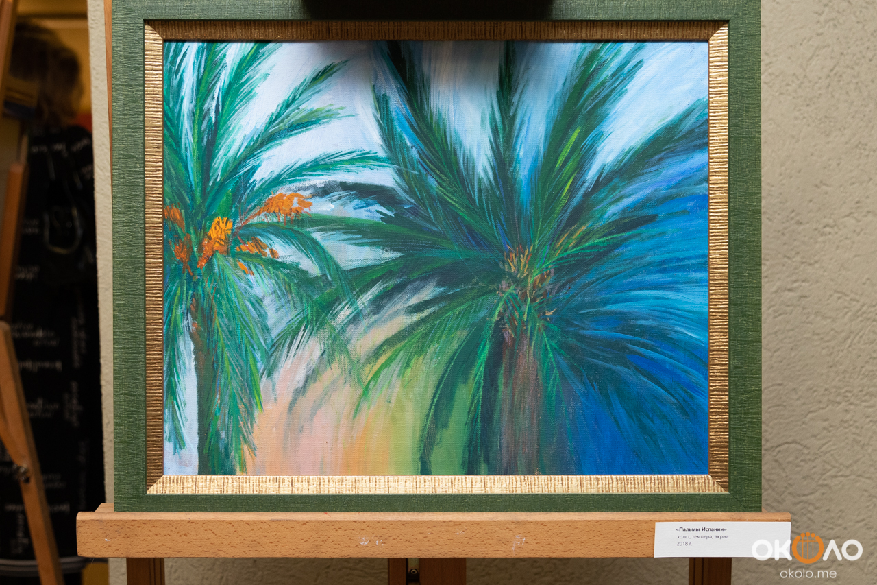 Картины, экспонируемые на выставке, отображают творческую лабораторию живописца: говорят о простых вещах и о том, что радует, что окружает и вдохновляет: будь то северный пейзаж с серебристым озером или небо, окрашенное ярким цветом, любимые цветы или животные, которые находятся в непосредственной близости с ней – все это искренно любит автор.