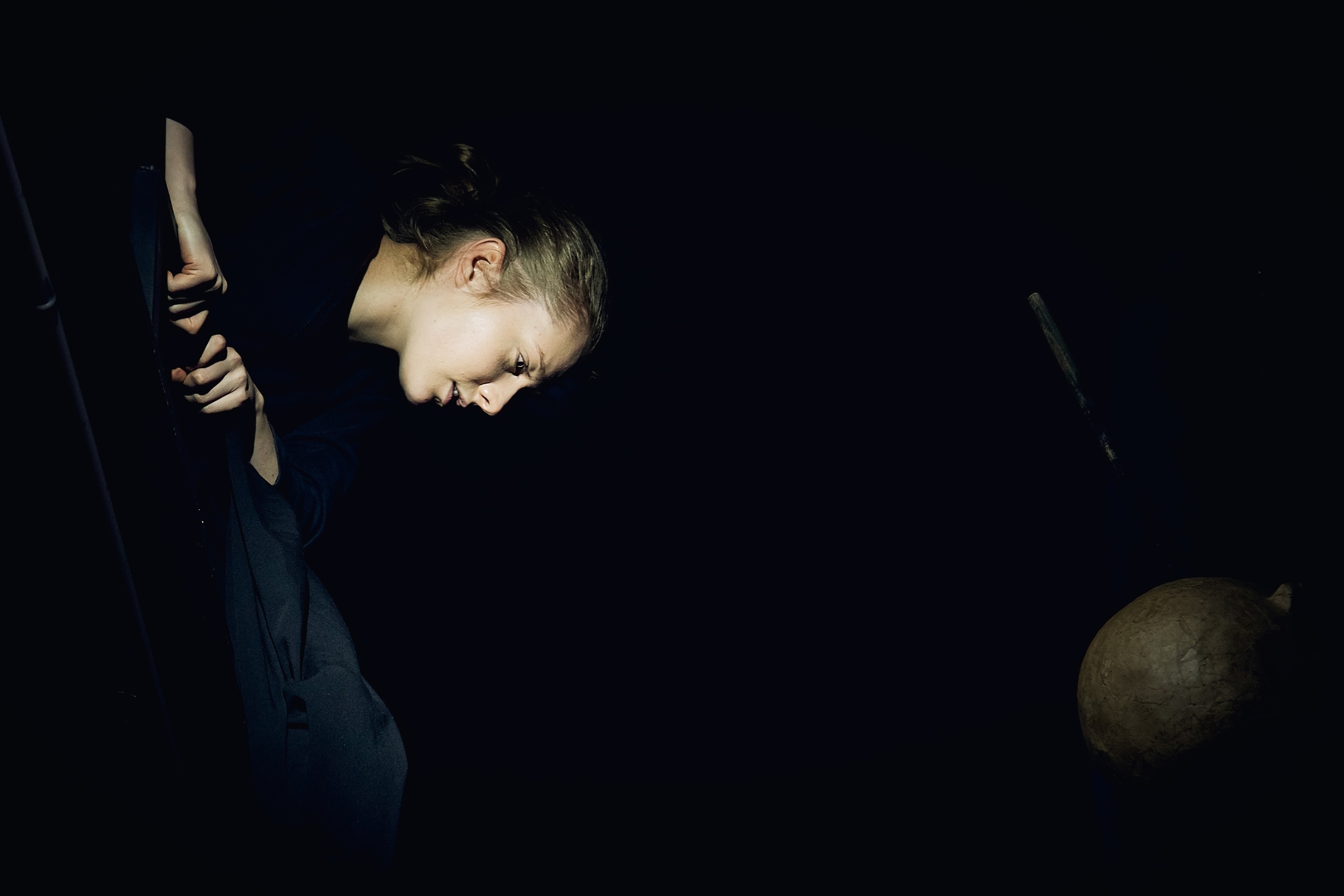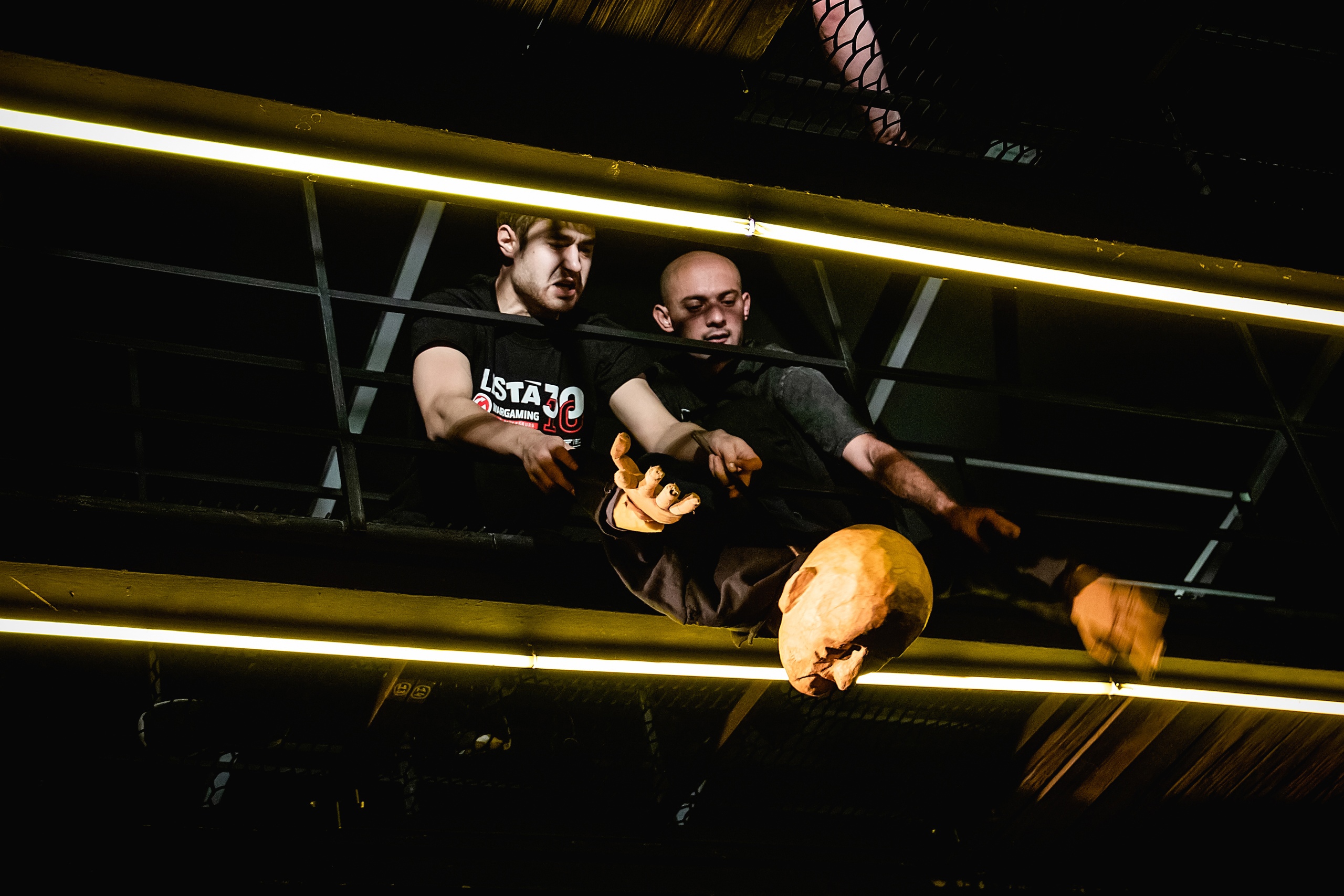 Большую часть спектакля Родька – единственный живой персонаж. Мир для него — непонятный, огромный, «неведомый оркестр за стеной». И в этом оркестре живые люди скрыты во тьме, а вместо них взаимодействуют с Родькой только ростовые куклы, неспособные на сочувствие и жалость. Они спускаются сверху и становятся причинами и предпосылками его страха.
