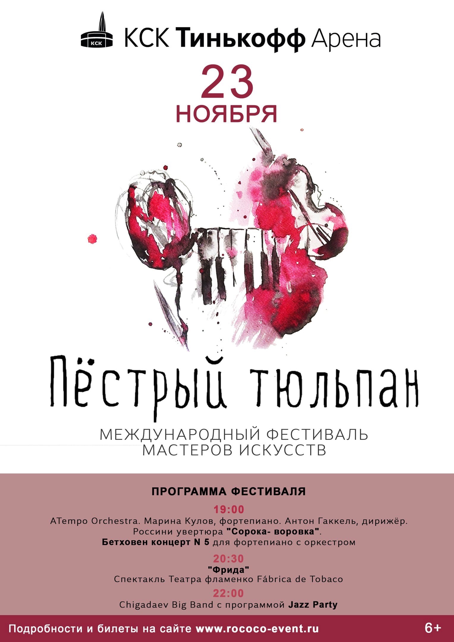 23 ноября 2021 года в концертно-спортивном комплексе ТИНЬКОФФ АРЕНА (Санкт-Петербург) состоятся гастроли V Международного фестиваля мастеров искусств «Пёстрый тюльпан 2021».