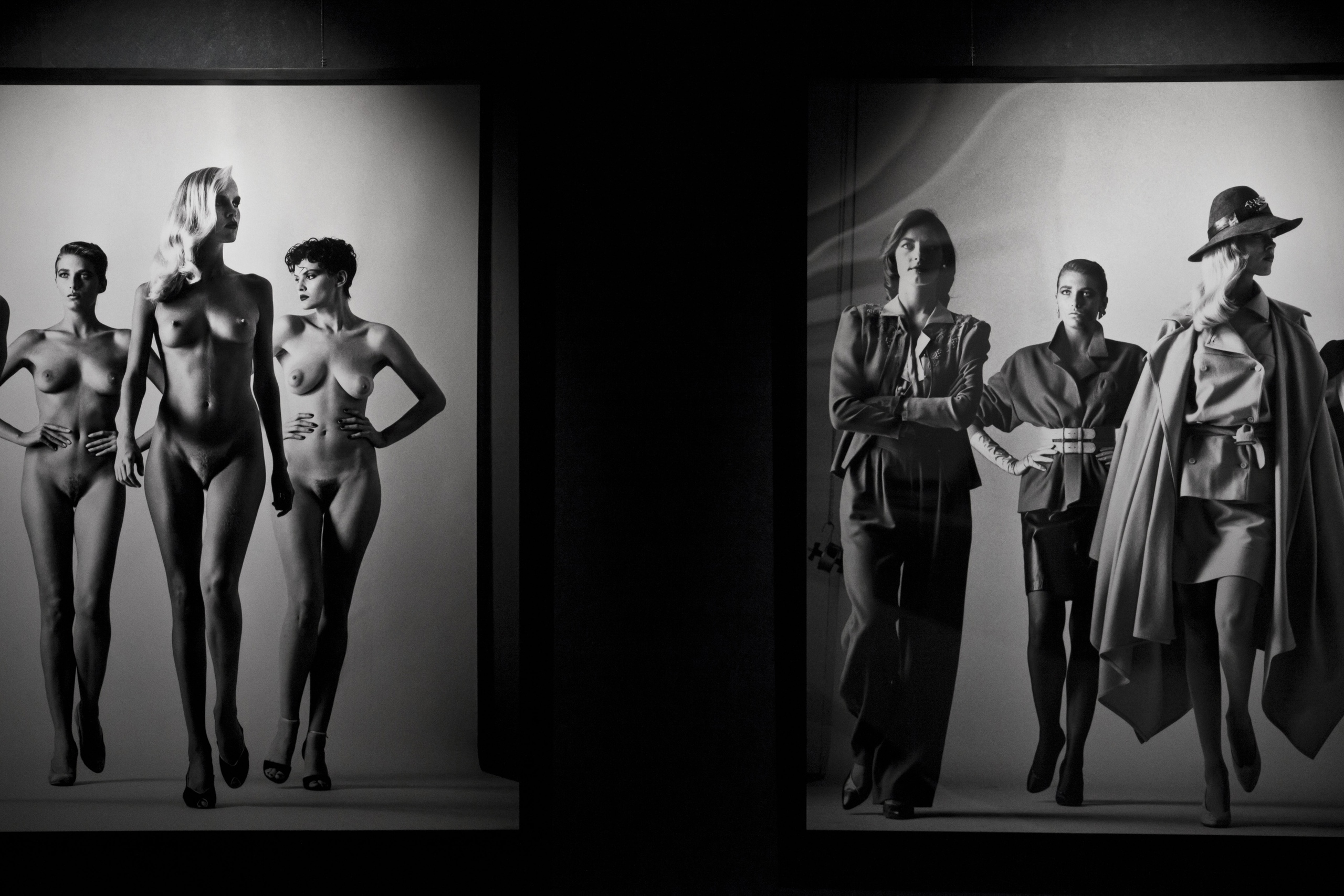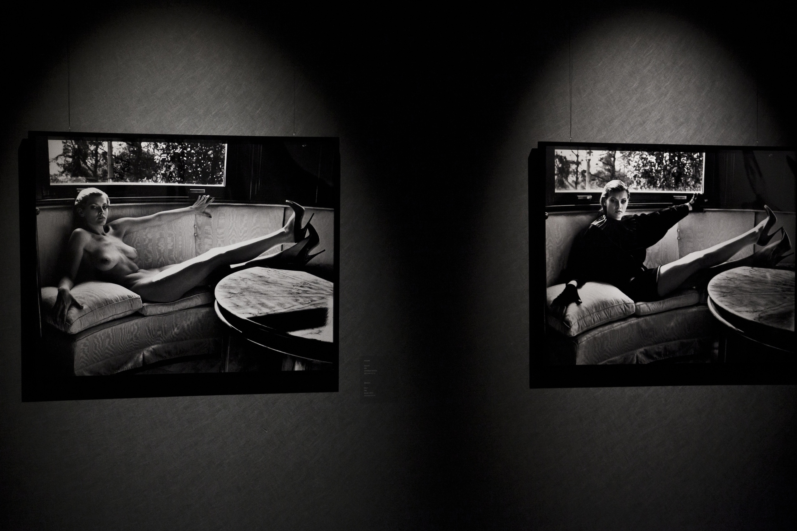 На выставке в «Эрарте» представлены как вышеупомянутые диптихи, так и самые известные фотографии мастера. Например, его автопортрет, на котором он в плаще снимает обнаженную модель, пока его жена устало скучает рядом. Другой известный снимок Ньютона: «Энди Уорхол».