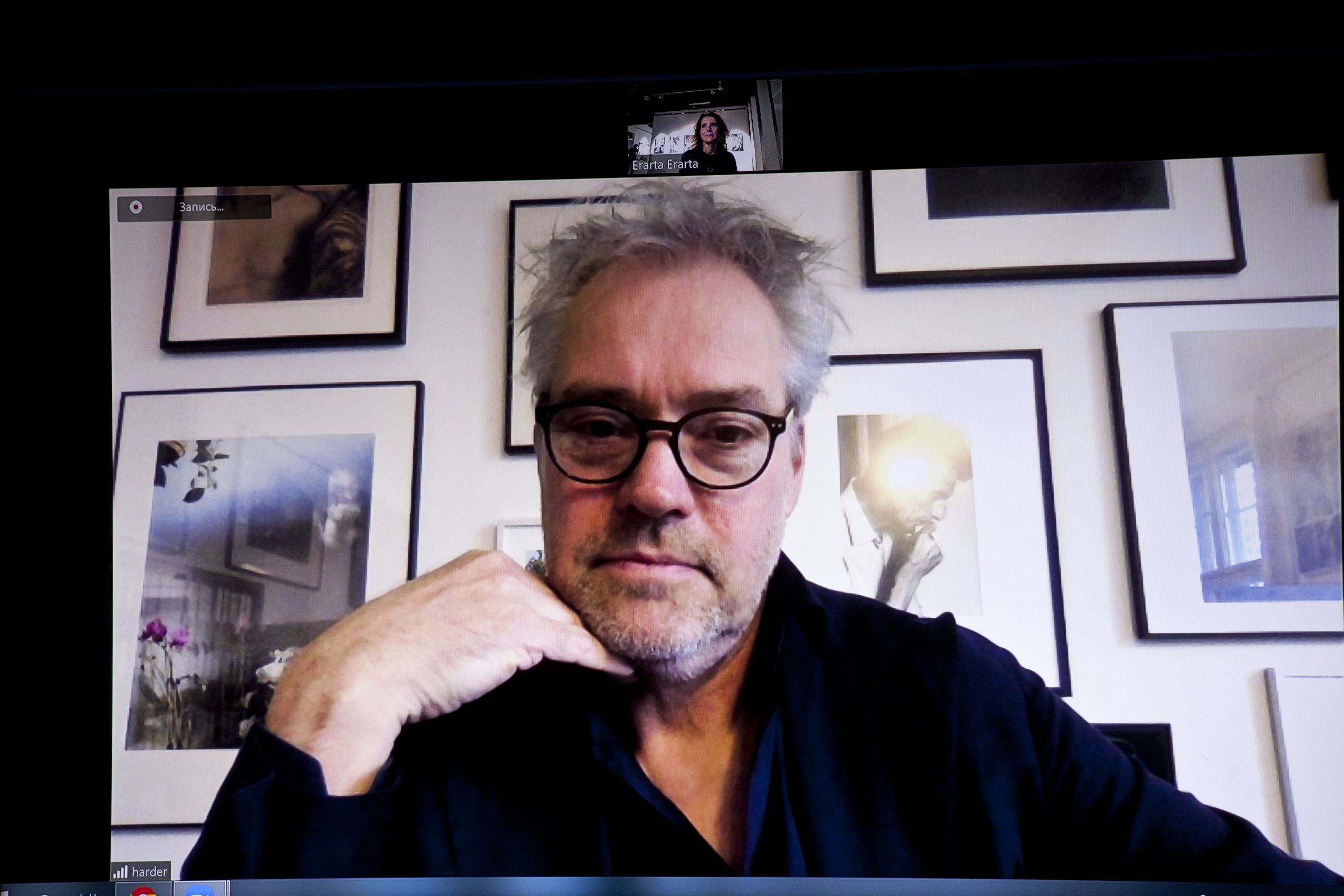 16 декабря на открытии выставки состоялась видеоконференция с директором фонда Хельмута Ньютона – Маттиасом Хардером. Куратор фонда уже ранее работал с другими фотографами, включая Стива Шапиро, работы которого демонстрировались в Эрарте несколько лет назад. Маттиас Хардер рассказал о творческом пути Хельмута Ньютона и его влиянии на мир модной фотографии.