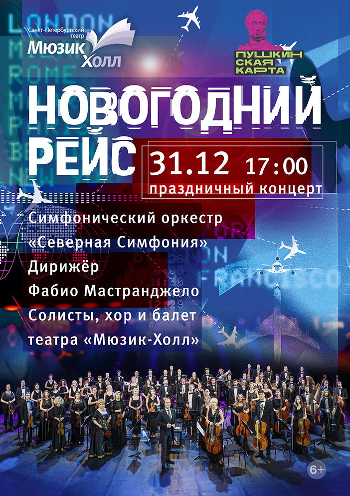 Зрителям будет предоставлена уникальная возможность отметить главный праздник года в атмосфере современного и наполненного предвкушением незабываемого путешествия здания аэропорта. В концерте примут участие солисты, хор и артисты балета театра «Мюзик-Холл», а маэстро Мастранджело продемонстрирует все грани своего дирижерского таланта. В основе сценария новогоднего концерта – чередование ярких музыкальных номеров с изысканным конферансом, наполненным интеллектуальным юмором, захватывающими приключениями и забавными курьезами из жизни путешественников, желающих улететь к родственникам или друзьям, отправиться в романтическое путешествие или в теплые края накануне Нового года. В здании аэропорта окажется и сам маэстро Фабио Мастранджело, а также артисты оркестра и солисты-вокалисты.