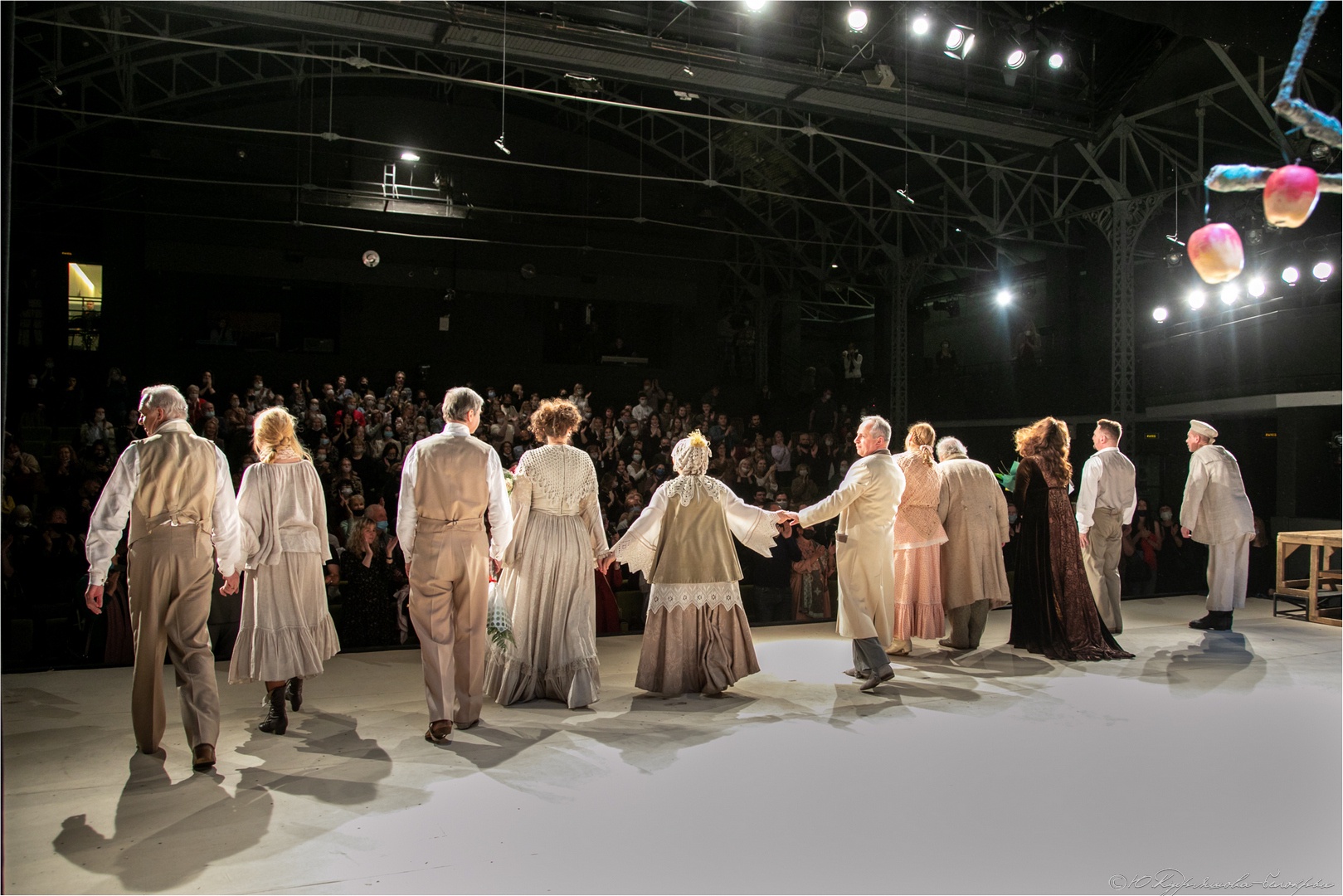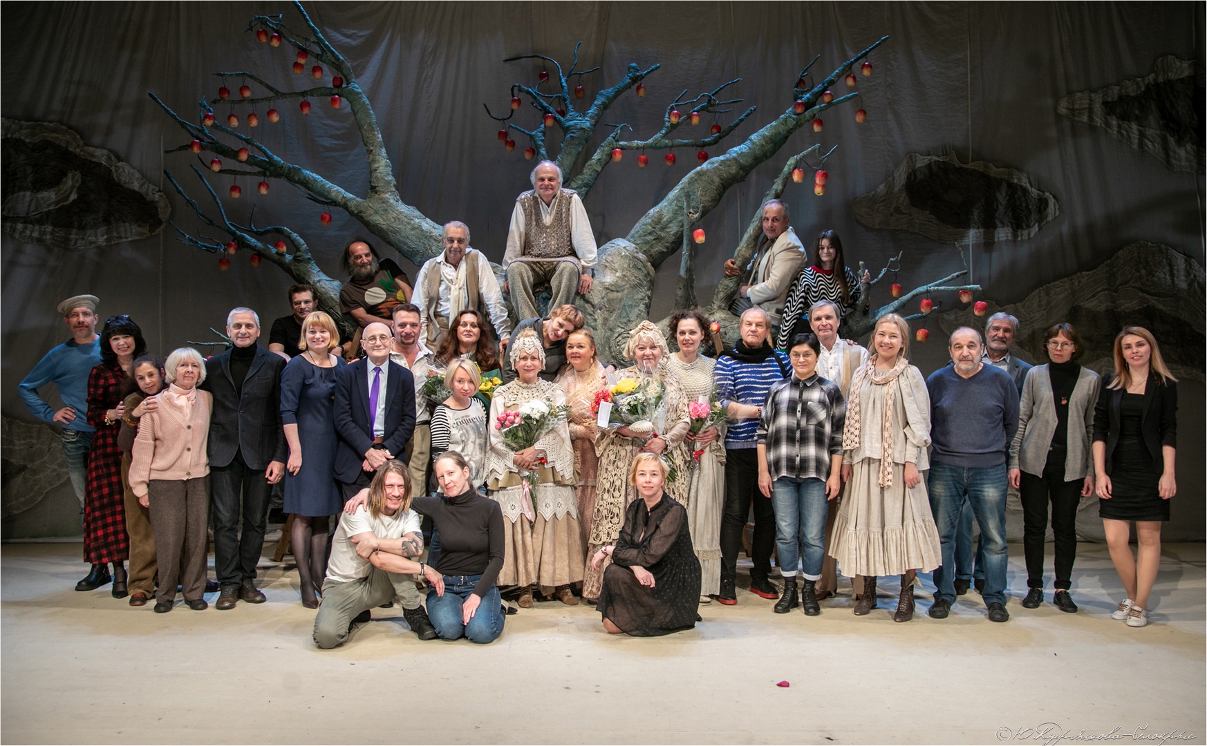 Все артисты проживали свои роли с необыкновенным подъёмом, вдохновенно и увлечённо. Чувствовался общий нерв, что это – в последний раз. Спектакль пронёсся вихрем и – вот неизбежный финал – фальшивые «яблоки» последний раз залезли на сказочное дерево и застыли в знакомых позах. Герои приветственно взмахнули руками и, кажется, что говорили они нам не «прощайте», а «мы будем вас помнить».