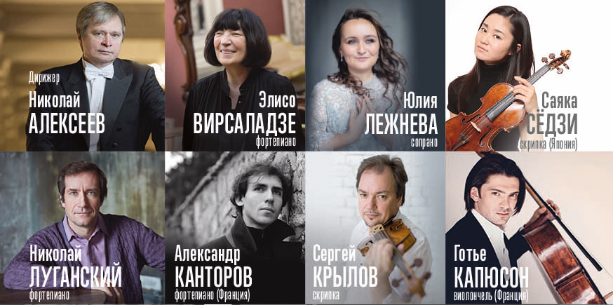 Музыкальные поздравления Филармонии принесут дирижер Николай Алексеев, пианисты Элисо Вирсаладзе, Николай Луганский и Александр Канторов (Франция), сопрано Юлия Лежнева, скрипачи Саяка Сёдзи (Япония) и Сергей Крылов, виолончелист Готье Капюсон (Франция). Вместе с ними на сцене в этот вечер оба филармонических оркестра, составляющие гордость отечественного исполнительства – Заслуженный коллектив России академический симфонический оркестр – старейший в стране, чья история восходит к 1882 году, и Академический симфонический оркестр, отмечающий в 2021 году 90-летие.