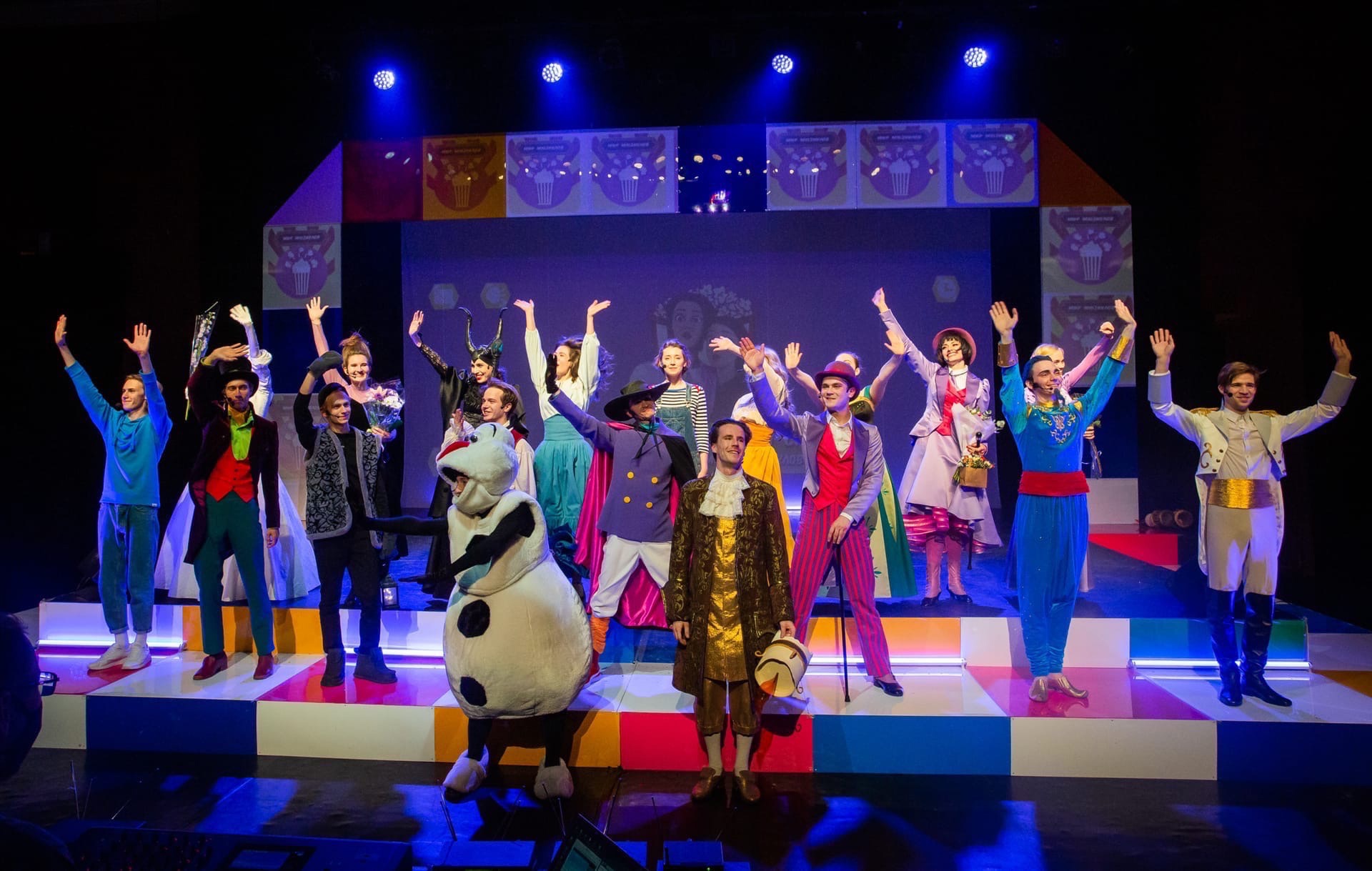 Вслед за Рапунцель к детям прямо из зала выходит бесподобная Мэри Поппинс и поет о пользе чтения, очаровательные «Золушки» с туфельками возмущаются непостоянством мужчин, властный и нарциссичный Гастон демонстрирует мускулы, элегантная Малефисента избавляет от тревог лучше любого психоаналитика, Черный плащ съезжает на сцену прямо по перилам, а самый лучший друг Снея Джин помогает ребятам найти друг друга.