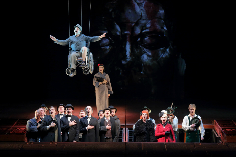 Автора спектакля в первую очередь интересовал не беспечный юмор, который существовал в первой части романа, сколько превращение опереточно-фарсовой стихии обывательского существования в трагический гротеск мировой бойни, которая не оставляет надежд на счастливый финал. Ни на земле, ни на небесах.