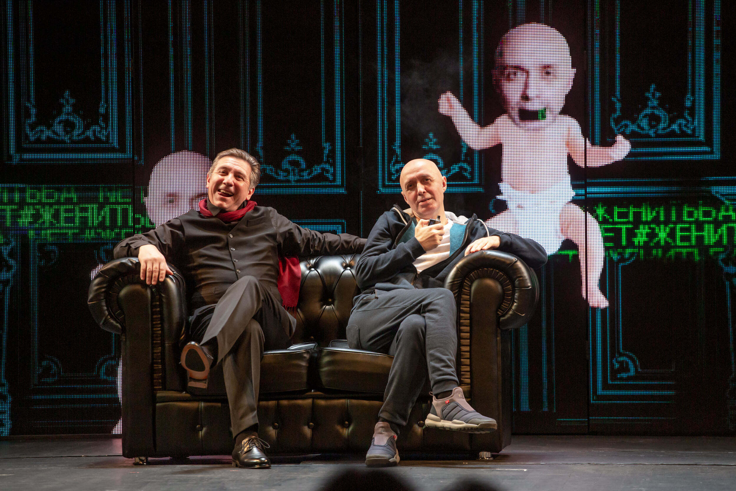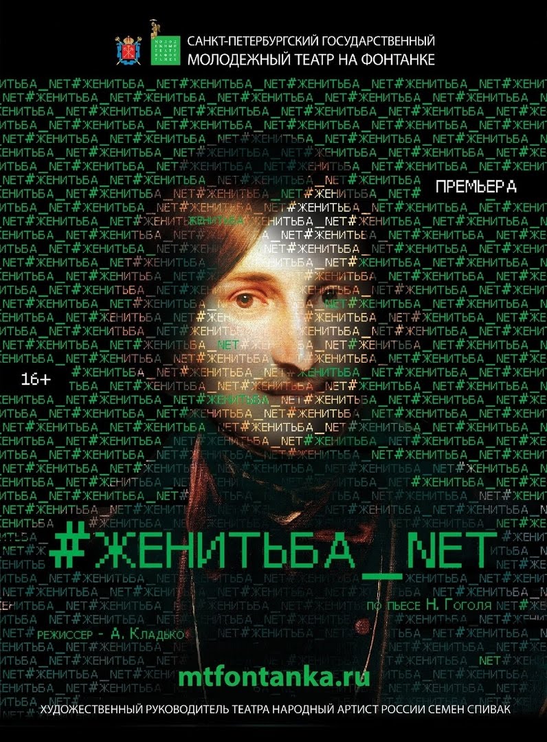 27 февраля на сцене Молодежного театра на Фонтанке в абсурдистской, современной и виртуально-психоделической комедии «#Женитьба_net» герои пытались найти любовь на сайтах знакомств и составить образ идеального партнера в онлайн-приложениях, обменивались смс и советовались с приятелями в чатах на языке классика мировой литературы — Николая Гоголя. Режиссер-постановщик этого «совершенно невероятного события» Александр Кладько с помощью уникальных декораций – экранов и видеоряда перенес персонажей «Женитьбы» в фантастическое пространство в стилистике «Матрицы», где стремление к совершенству заводит безвольных и растерянных, но все же настоящих людей в ненастоящую реальность цифр и кодов, в которой близость может быть только в Интернете.