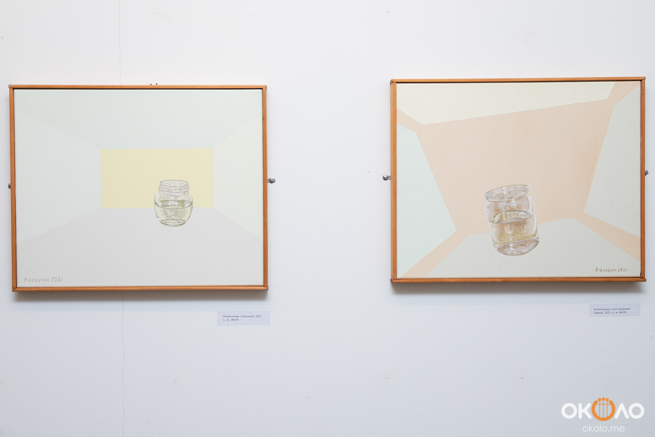«Для своего нового проекта «Бледная манера» Валерий Вальран создал специальное пространство – короб, в котором убрал переднюю стенку, остальные выкрасив в нужный цвет, данный едва-едва, намеком. В эту идеальную стереометрию были помещены предметы из стекла – банки, бутылки, колбы, стаканы. Был создан чистый, стерильный мир, как будто предназначенный для проведения научного исследования, имеющего отношение к оптике. Действительно, серия холстов, написанная художником на основе сконструированной для его натюрмортов трехмерной модели, представляет собой предельно ясный в своей логической последовательности эксперимент. Задача его – наблюдение за тем, как взаимодействуют предметы с пространством, друг с другом и со своими отражениями, ибо на определенном этапе появляется зеркало. Здесь важен даже не сам итог, но процесс – каждая работа взывает к созерцанию, почти буддийской отрешенности», — Глеб Ершов.