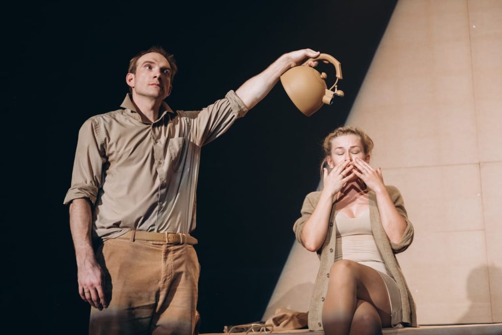 В итоге персонажам не хватало «электричества», — ведь перед нами пара в кризисе, прожившая в нём, судя по всему, семь долгих и мучительных лет. Сцены открытой конфронтации, ссор провисают, как будто не хватает темперамента и, вообще, сил на споры. Даже сцена с дракой супругов выглядела очень аккуратной и выверенной, как хорошо отрепетированный танец, а не как сильный энергетический выброс эмоций двух отчаявшихся людей. Весь спектакль не покидало ощущение, что нет драйва, куража, — слишком уж бережно и ровно Вернер и Барбара взаимодействовали друг с другом.