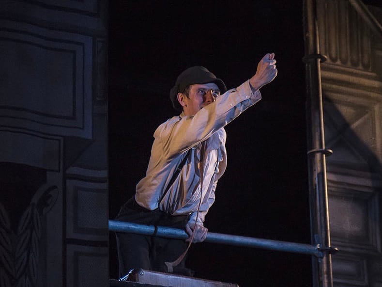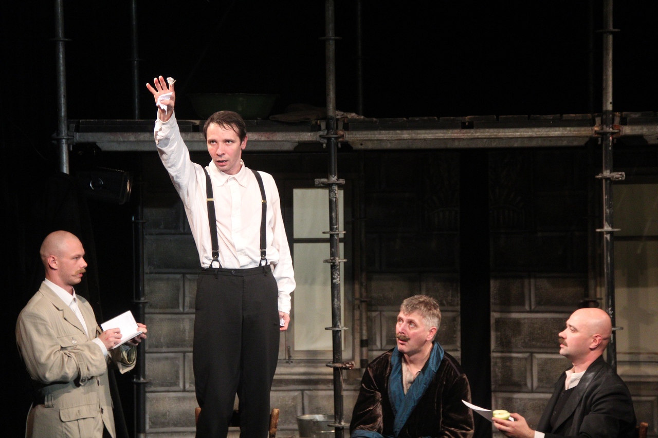 Основное действие начинается уже после убийства старухи-процентщицы, временами постановка напоминает то ли водевиль, то ли шутовское действо, когда герои суетятся, пьют, кричат, хохочут, падают в обморок, обсуждают геморрой — и пафос Достоевского постепенно уходит, обнажая то, что близко нам сегодняшним.