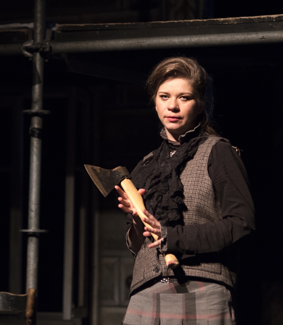 Новый персонаж, созданный театром — неистовая, полубезумная проводник-Лектор (Юлия Гришаева) с томиком Достоевского, средоточие боли и ярости. Одна рука у неё короче другой, и она демонстрирует, как легко можно оступиться, когда вокруг сплошь цирк уродов — несмотря на то, что каждый человек тянется к свету, тьма всегда рядом. И вот уже маленькая беспомощная ручонка внезапно удлиняется и становится неуправляемой… тянется к топору… «Я не хотела…»