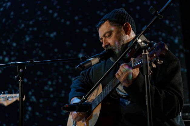 С большой задержкой официальный вечер начался. Юбиляр в свойственный ему манере сообщил, что он выбрал формат концерта исходя из того, что ему хотелось просто спеть. Бас, клавиши, соло и акустическая гитары — вот тот состав, который помог представить песни Руслана собственного сочинения.