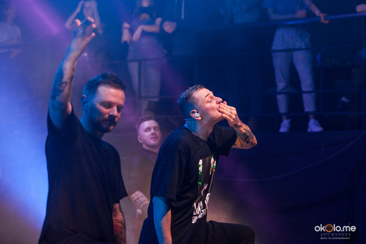 Взрывной музыкальный драйв подогревался четко организованным слэмом. Не обошлось и без прыжков солиста Артёма Хорева на танцпол. Со сцены он отправился в незамысловатую прогулку по внешней стороне вип-балкона, пожимая фанатам руки, после чего пропев куплет песни, смело прыгнул в толпу, которая покатав его на руках, спокойно спустила в центр круга, где он поплясал вместе с ликующей публикой.