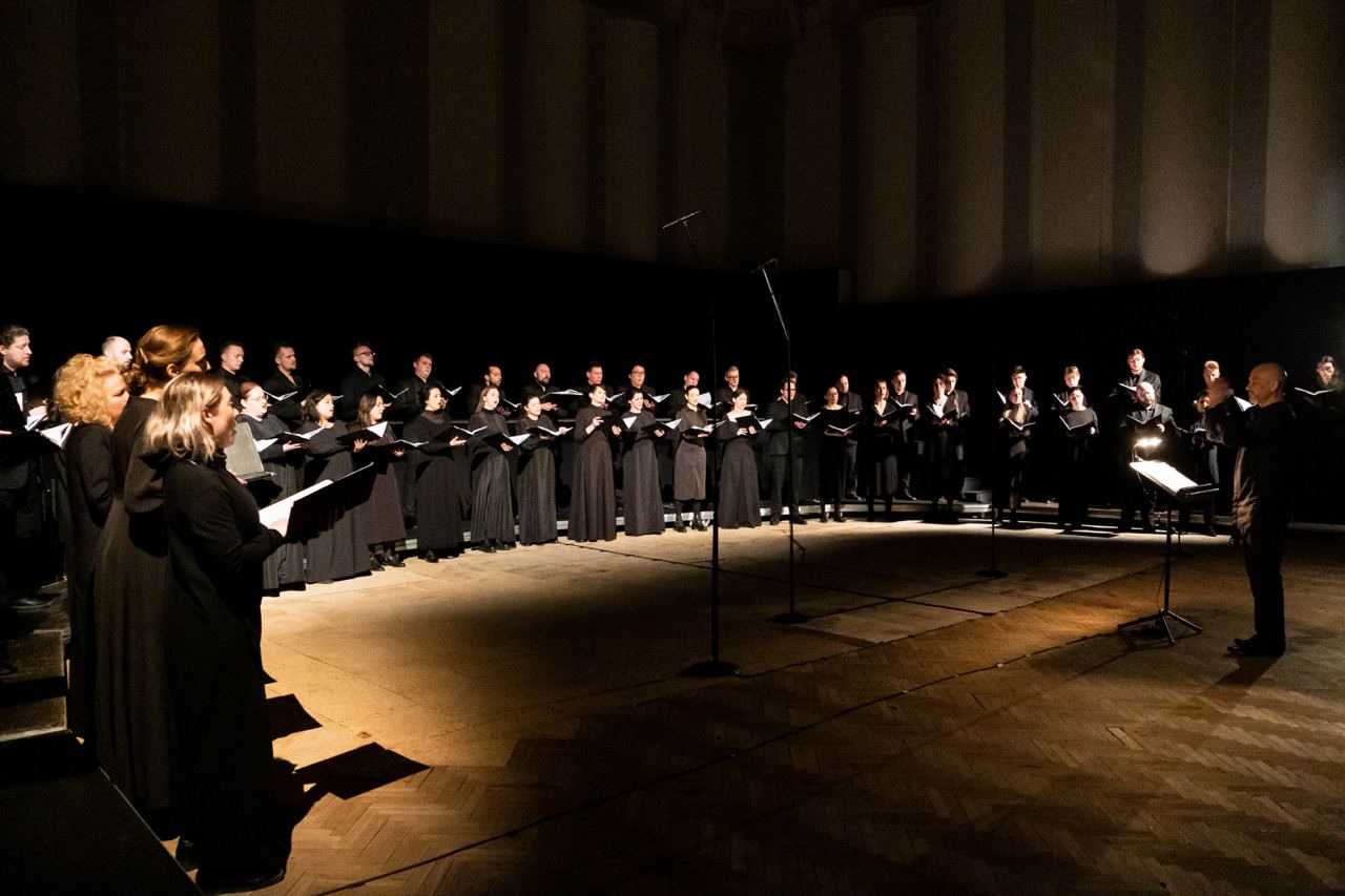 Программа вечера соединила в себе две музыкальные традиции – западного и восточного Христианства, концерт состоял из двух отделений. В первой части смешанный хор исполнял зарубежных композиторов Ренессанса, а во втором – произведения Альфреда Шнитке, русскую духовную музыку. Первое отделение прошло в основном концертном холле Дом радио: посвященные Богородице сочинения звучали под расписанными арочными сводами особенно торжественно. Полифония молитвы как диалога с Богом нашла воплощение в форме многоголосия смешанного хора, изящном и точном исполнении. Вечный дуализм земной трагедии и небесной благодати, стремление к иному, чистому и непорочному миру прорастали сквозь музыку в слушателях.