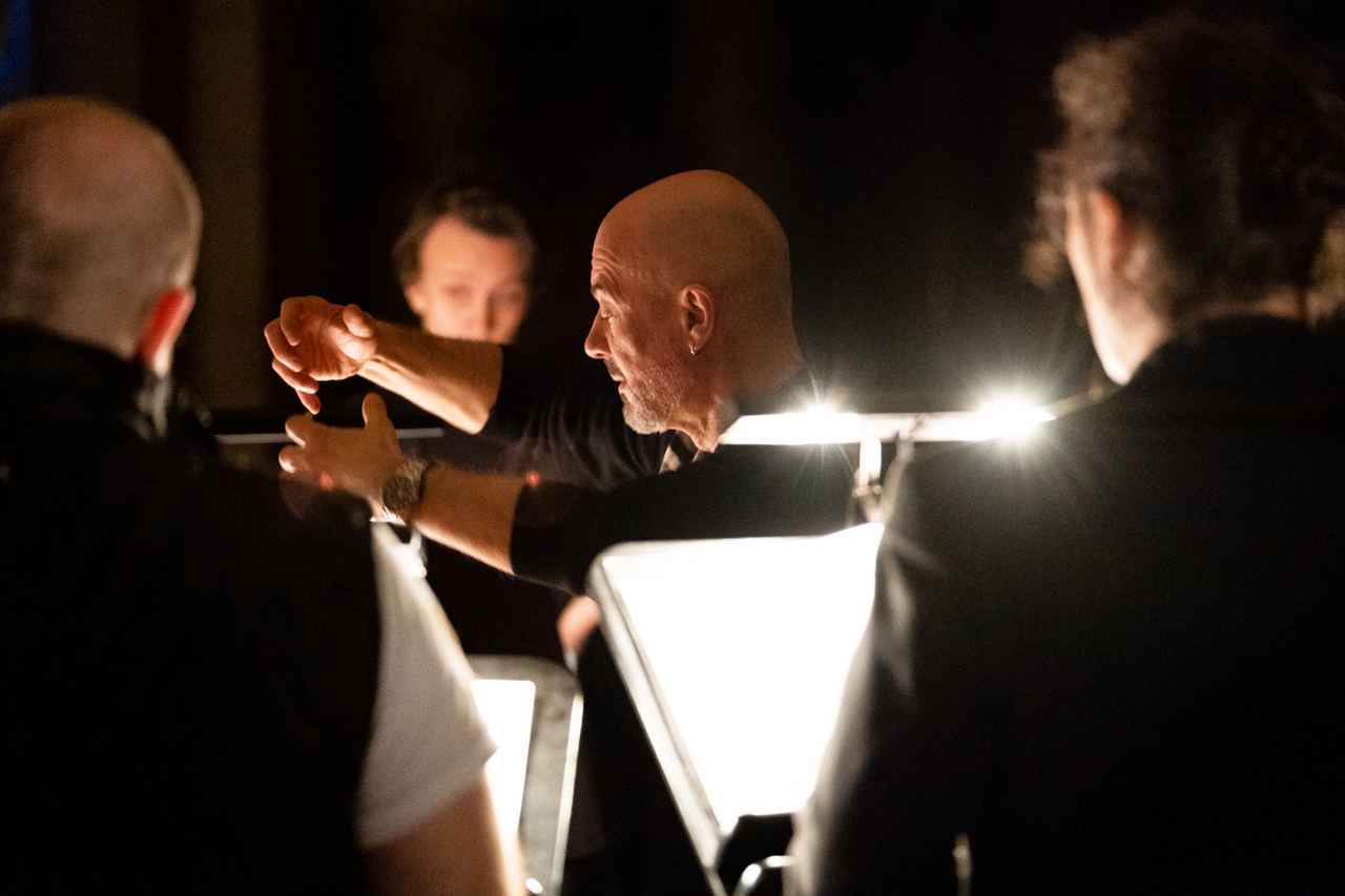 После небольшого перерыва зрителей пригласили в другой просторный зал, где разместились более 50 хоровых исполнителей. Это отделение было полностью посвящено музыке Альфреда Шнитке. Духовные сочинения композитора соединяют католическую и православную оптику в изображении традиции. Произведения для второй части программы были выбраны более «строгие», поднимающие тему покаяния и греховности человеческой природы. Из полумрака и абсолютной тишины зала проступало звучание колокола и набирали силу голоса исполнителей. Так похоже на зов света в темноте души и начало диалога со Всевышнем.
