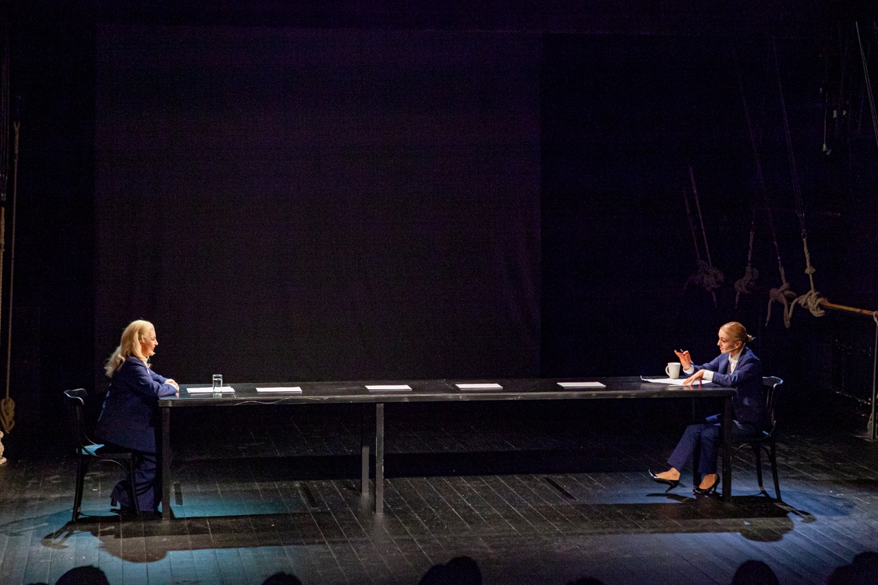 Вся история разделена на небольшие скетчи – эпизоды, в которых заняты только две актрисы, сидящие напротив друг друга за длинным черным столом. Одна из девушек – это циничная, властная, уверенная в себе топ-менеджер сети крупных компаний. Она манипулятор, дергающий за ниточки словно марионеток всех сотрудников. С застывшей на лице маской искусственной улыбки она с помощью наводящих вопросов, установок и внушений создает сценарий девушки, оказавшейся в ее власти.