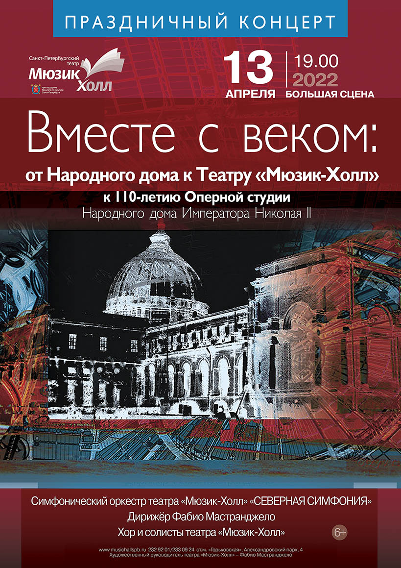 13 апреля в 19.00 на большой сцене театра состоится праздничный концерт «Вместе с веком: от Народного дома к Театру «Мюзик-Холл», приуроченный к 110-летию Оперной студии Народного дома Императора Николая II.