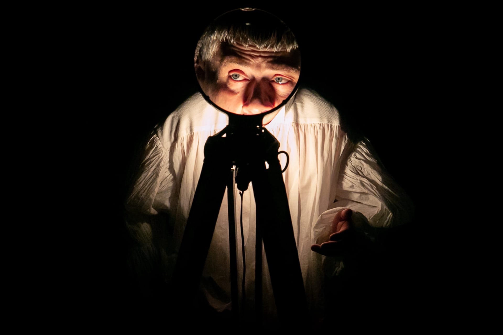 В спектакле много пауз, бесконечных повторений и порой бессмысленных пространных монологов. «Вы не помолодели за эти 5 минут», — насмешливо обращается к зрителям Тристрам, намекая, как много времени мы тратим на ненужные разговоры и формальности. А на сцене — проекции отрывков из романа — целые главы-пласты жизни, которые пролетают незаметно, как песок сквозь пальцы.