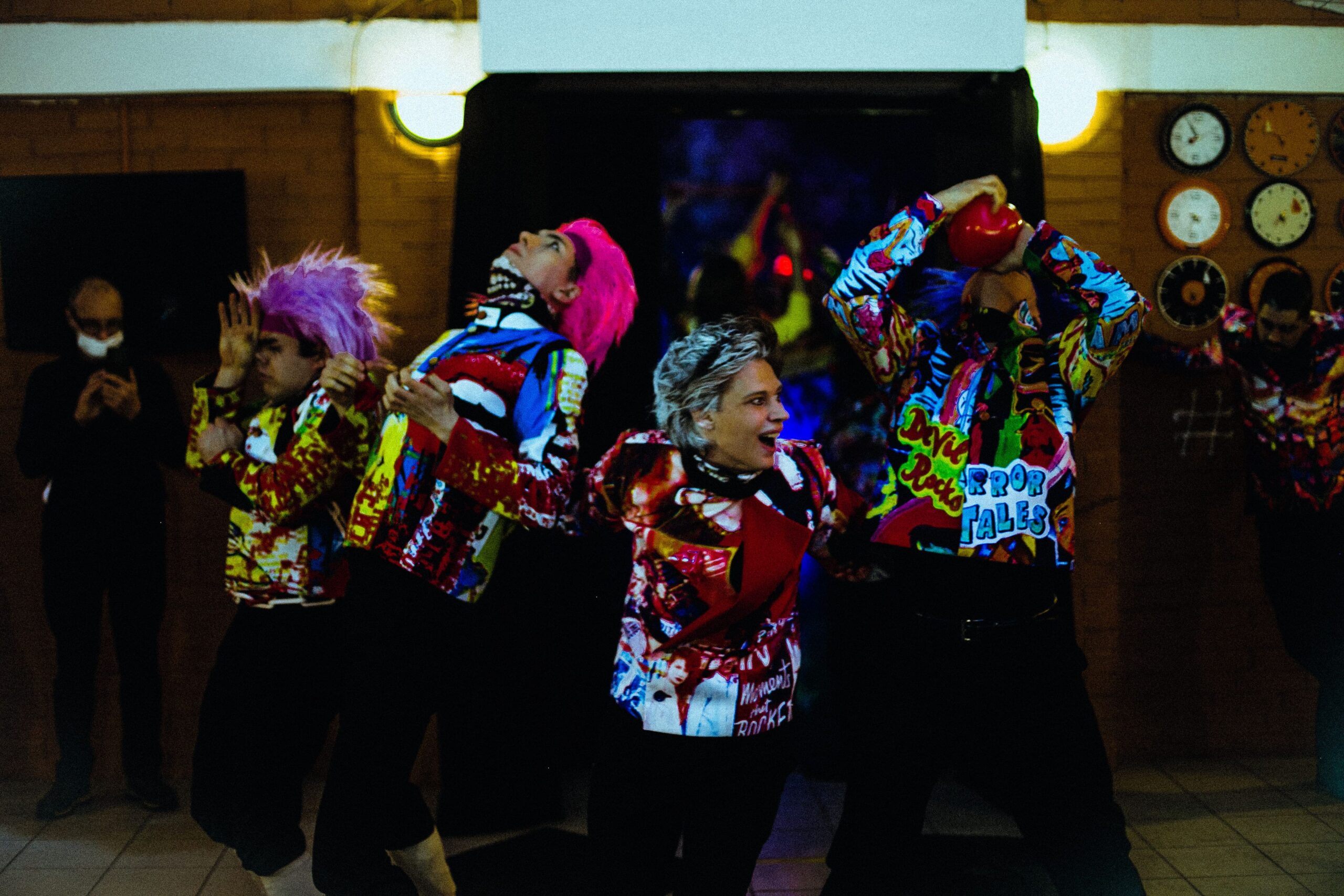А.О.: Нам нужна была комедия — как ни крути, это самый ходовой жанр. А то, как это в итоге получилось,— дерзко, отчаянно, разрывая шаблоны и рамки — стало во многом отражением того несколько своеобразного места, где мы находимся. Трэш окружающей действительности породил трэш-комедию, она как бы зафиксировалась в спектакле.