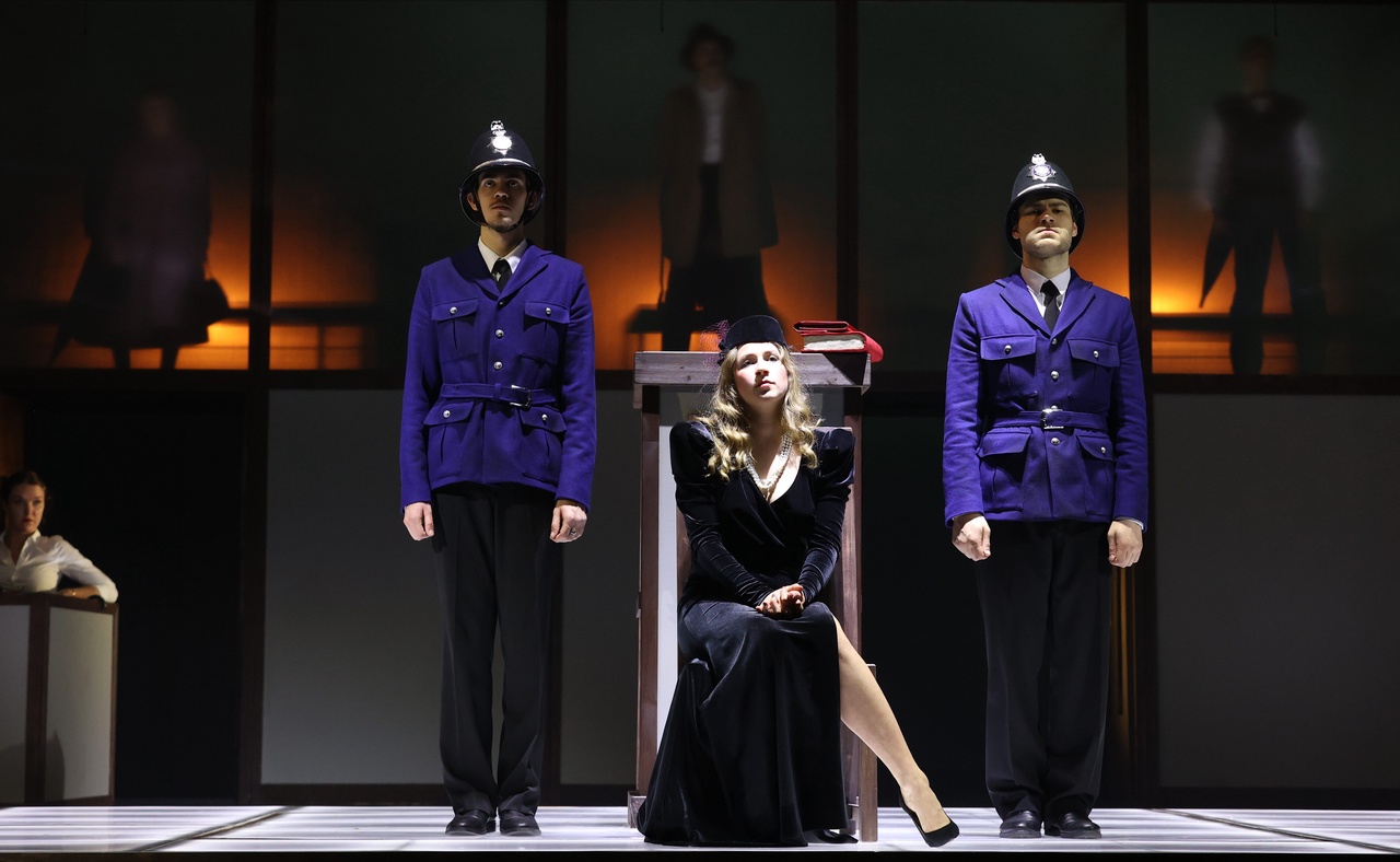 Нельзя не отметить ту щепетильность и аккуратность, с которой постановщики подошли к вопросу передачи духа Англии. Кому-то может показаться простой задача воплотить туманный Альбион на сцене, ведь у каждого из нас в голове имеется набор стереотипов об этой стране. Следуя им, на сцене присутствуют и знаменитая красная телефонная будка, и вышагивающие королевские гвардейцы – в красных мундирах и высоких меховых шапках, и представители Скотланд-Ярда в неизменных плащах. Тем не менее, мало просто поместить героев в туман и серость и одеть их в узнаваемые костюмы. Англия – это еще и особый менталитет, с которым все гораздо сложнее. Как показать чопорность англичан? Как отразить их педантичность? Как указать на их приверженность привычкам? Как передать непостижимый английский юмор? Как подчеркнуть многовековую неприязнь шотландцев к англичанам? Все эти позиции, без которых невозможно подлинное представление Англии, безупречно отражены в «Свидетеле обвинения». Так, в первые же минуты действия помощник адвоката Джон Мэйхью (Роман Дряблов) делает разумное замечание секретарше Грете (Виктория Жилина), отвечая на ее предложение подать ему чаю. Или, к примеру, откровенно пренебрежительное отношение окружающих к супруге Леонарда Ромэйн из-за того, что она – не британка, а немка. Подобные ключи-подсказки можно найти на протяжении всего спектакля.