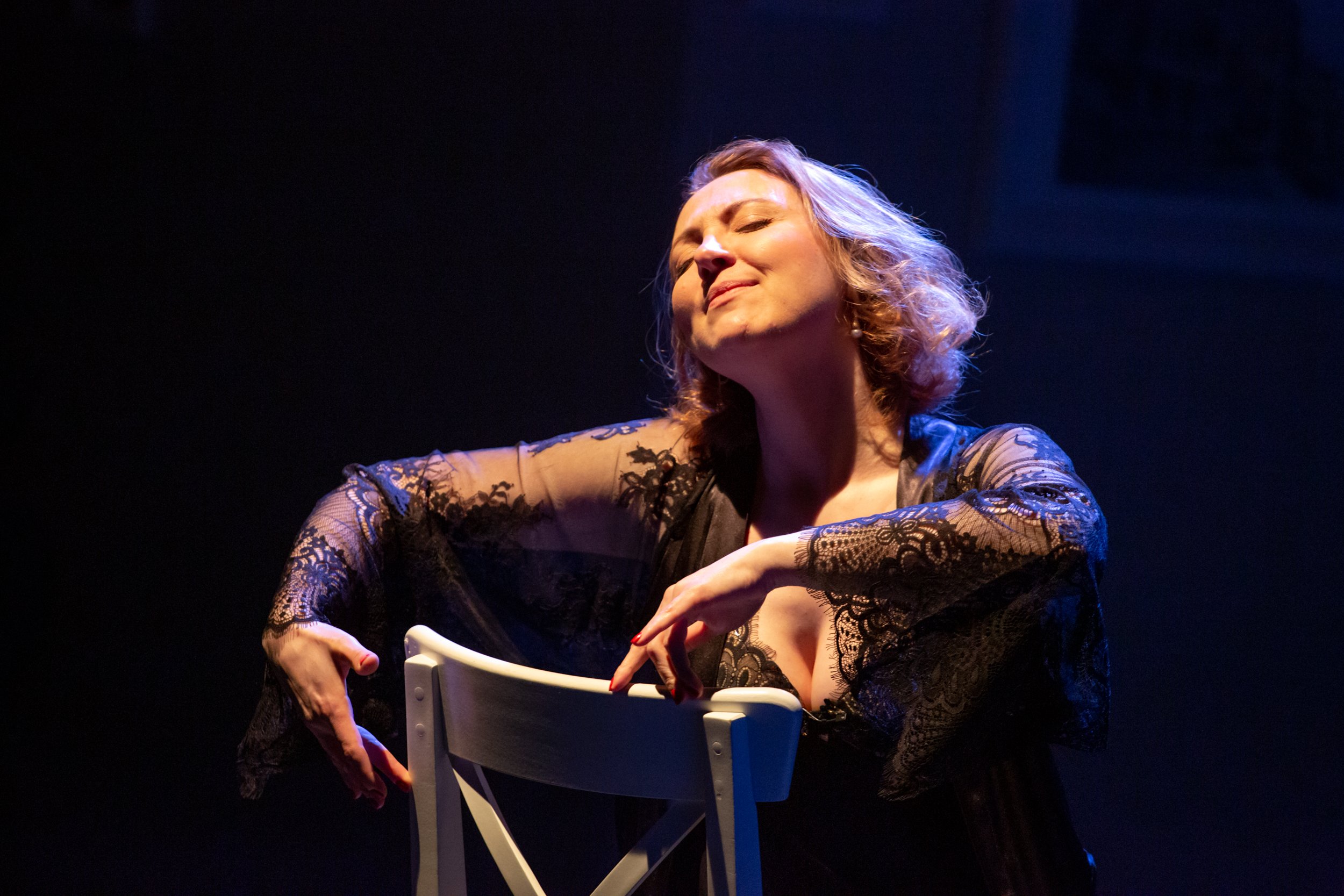 Для Молодежного театра на Фонтанке моноспектакль – хоть и не совсем привычный, но, тем не менее, вполне знакомый жанр. На его сцене уже идут моноспектакли ведущих актеров театра. И вот, очередное пополнение – спектакль «Я жду тебя, любимый…», в котором роль героини Марии исполнила Нина Лоленко. Создатели обозначили постановку как монодрама, и это в точности передает суть происходящего на сцене.