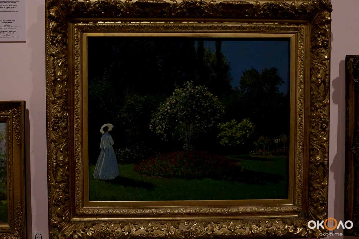После лестницы гости Щукина попадали в Музыкальный салон, где были выставлены картины импрессионистов. Так же, как и они, сто лет спустя посетители Эрмитажа смогут посмотреть работы художников этого стиля. Эталоном импрессионизма считается Клод Моне. В центре экспозиции одна из ранних его картин — «Дама в саду». Также на выставке можно увидеть другие полотна Клода Моне: «Скалы в Этрета», «Белые кувшинки», «Сирень на солнце», «На крутых берегах близ Дьеппа», «Руанский собор в полдень», «Стог сена в Живерни», «Городок Вертей», «Чайки. Река Темза в Лондоне. Здание Парламента», «Завтрак на траве», а также картины Альфреда Сислея «Городок Вильнев-ла-Гаренн на Сене», Камиля Писсаро «Площадь Французского театра в Париже» и «Оперный проезд в Париже», Эдгара Дега «Проездка скаковых лошадей» и «Танцовщицы на репетиции» и работы других художников, приобретенных Щукиным.