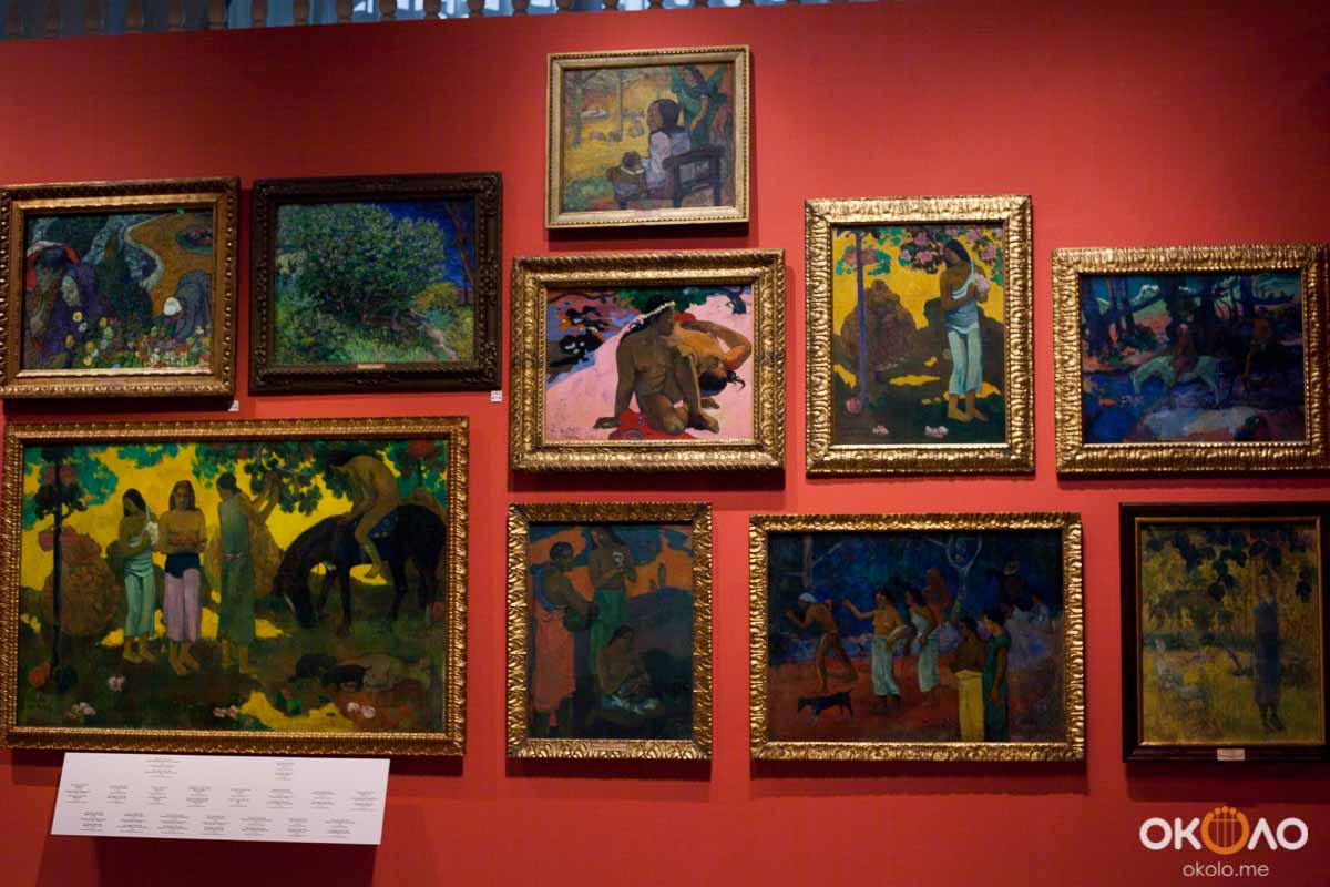 Полотна Гогена, выставленные в доме Щукина в Большой столовой, современники именовали «Иконостас Гогена». В достаточно темном помещении, стены которого были покрыты кожей, гости Щукина могли оценить блеск и красоту тропических пейзажей. Полотно «Жена короля» прибыло в «Эрмитаж» из Москвы несмотря на всю свою хрупкость. Сам Гоген признавался, что «по цвету еще никогда не создавал ни одной вещи с такой сильной торжественной звучностью».