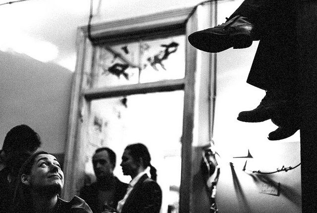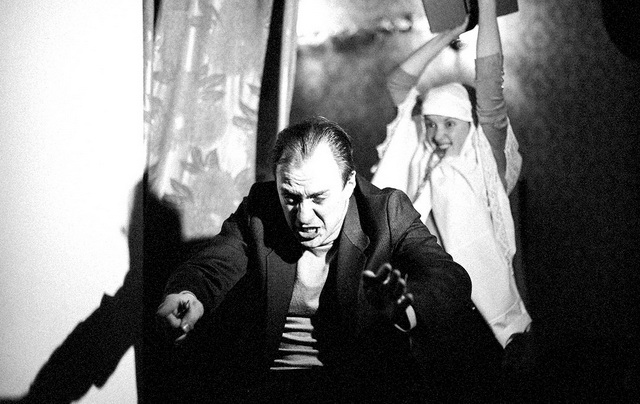 Постепенно словесные поединки распределяются в разные пространства, и порой зрителю приходится выбирать — сочувствовать рефлексирующему философу Якову Друскину, сопереживать нежному монологу Тамары о любви, симпатии и чувственности или смеяться над абсурдистскими сценками Хармса.