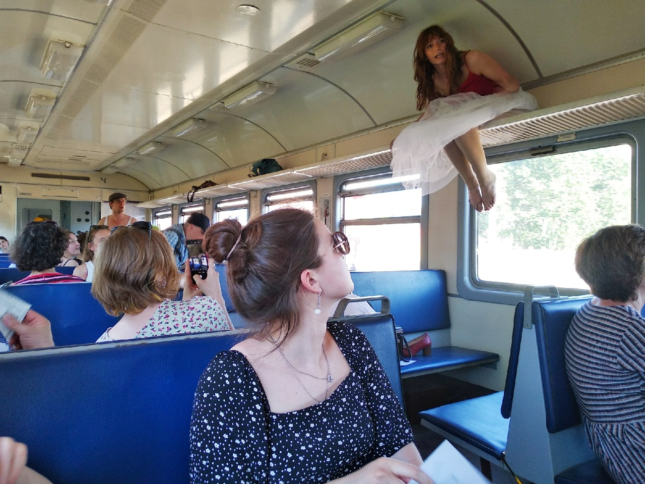 Ближе к вечеру все группы зрителей оказались на Финляндском вокзале, где могли «Исследовать очередь» (режиссёр Иван Чигасов) или убедиться в том, что «Каждая дамочка станет старухой» (режиссёр Филипп Бородин), а потом сесть в электричку до Лисьего носа. В вагонах параллельно проходили эпизоды «Поезд» (режиссёр Наталья Слащёва), при просмотре которых программка предписывала быть отзывчивым, открытым и довериться судьбе. И это было важное замечание, так как театральное представление требовало активного участия публики — как с «Маршрута Старухи», так и случайных пассажиров. Актёры из моего вагона Михаил Рябов и Анна Покровская всячески обыгрывали любую реплику со стороны зрителей, вовлекали их в активный диалог, подавали им требуемые по сюжету реплики и помогали забираться с ногами на сиденья электрички. Весь вагон внимал рассказу «Я прочел очень интересную книгу о том, как один молодой человек полюбил одну молодую особу…» в дорожной интерпретации, и время до нужной остановки пролетело незаметно.