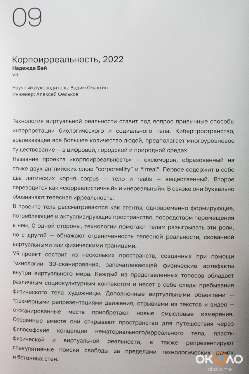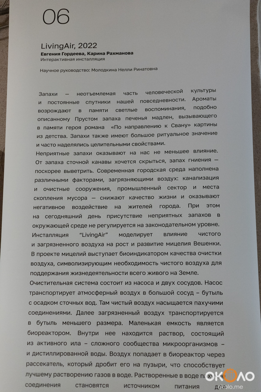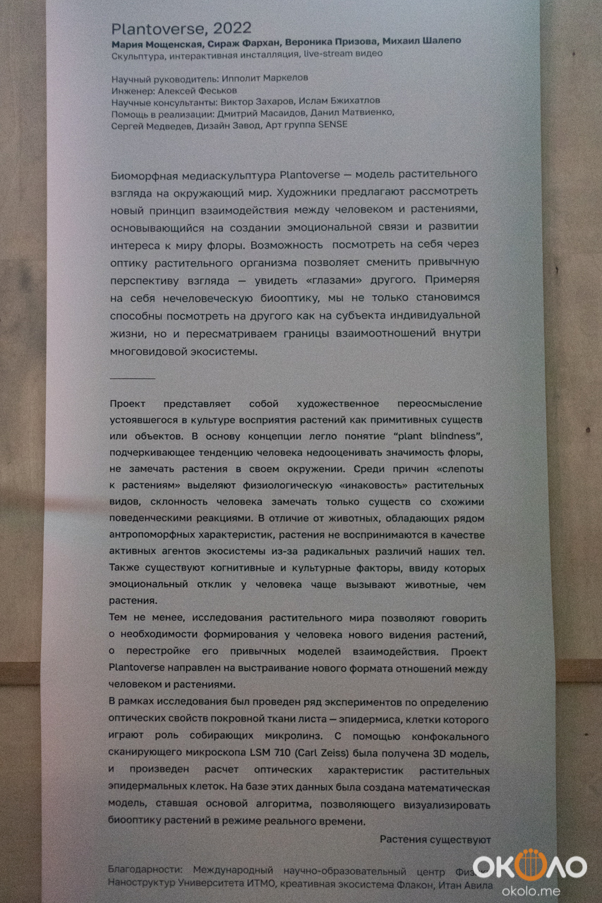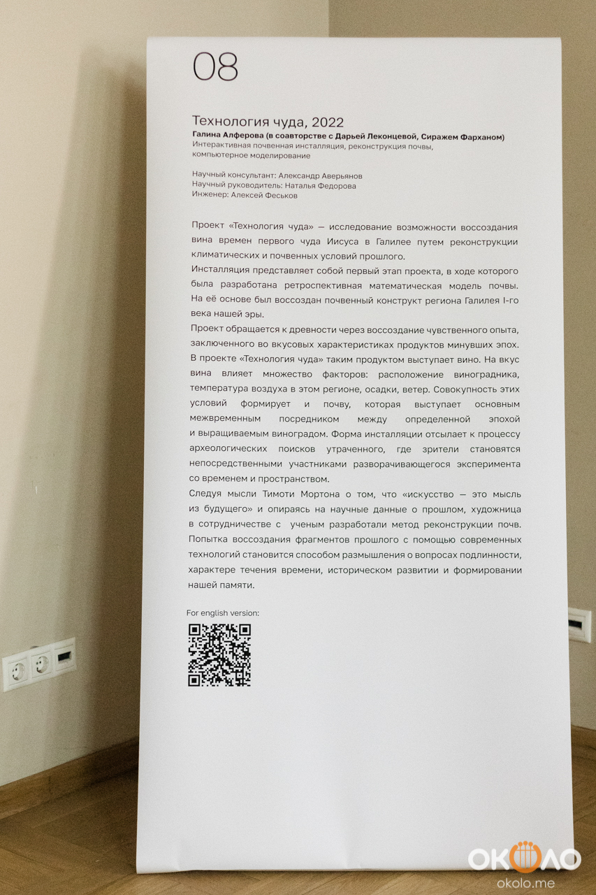 Выставка создает своеобразный срез современности, основанный на исследованиях, проведенных студентами во время обучения в магистратуре Art & Science. Зрение растений, археология медиа, искусственный интеллект и работа с большими данными, реконструкция исчезнувших почв и сонификация нейро-волн — это лишь некоторые из тем, интересующие молодых художников.