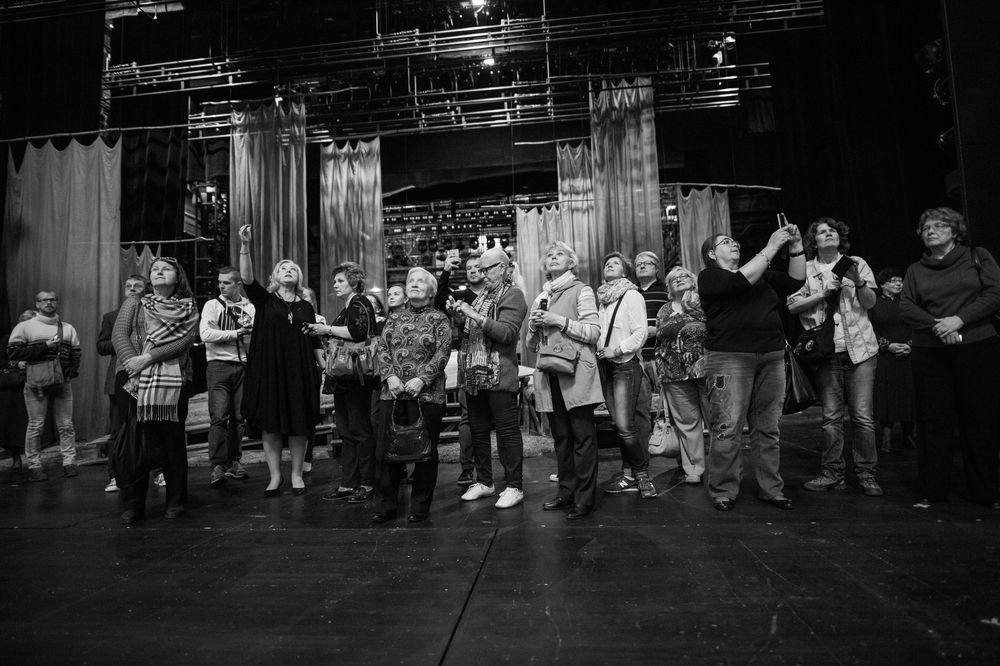 Начинается путешествие за кулисы с краткого исторического экскурса про архитектора здания, основателя театра, первое руководство. Далее группа слушателей перемещается в зрительный зал, где на сцене идёт демонтаж вчерашнего спектакля, а затем в реквизиторскую мастерскую и так далее. В разных локациях, помимо экскурсовода, слово брали заведующие цехами и рассказывали о значении своей работы, демонстрировали сценические раритеты и результаты текущей работы. Это всё были, безусловно, «театральные» люди, ведь работа в таких местах требует невероятных человеческих и профессиональных качеств, и прежде всего феноменальной памяти, нестандартного подхода к решению задач, максимальной собранности и дисциплины.