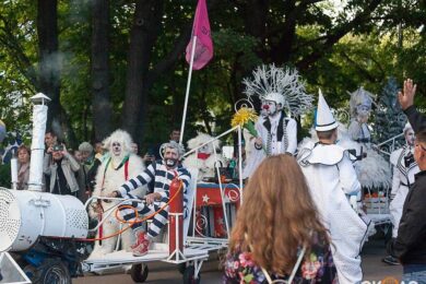 Уже не первый раз в фестивале принимал участие Театр имени Которого Нельзя Называть с комическим концертом «Хор Дурацкого». Театр СоЛу показал спектакль «Картонные» на поляне у павильона Каменные кладовые. На разных площадках можно было посмотреть спектакли-променады Российского Государственного Уличного Театра КАРТОНИЯ «Миры Жюль Верна. В поисках Творческой Энергии», Механического Экспериментального театра ЗЛЫЕ РЫБЫ в стилистике фантазийного цирка фриков, Уличного театра АспектР, Театра Высоких Импровизаций STUDIYA 33, Уличного театра ПЛАСТИЛИНОВЫЙ ДОЖДЬ, Уличного театра Странствующие куклы господина Пэжо и других. Спектакли-променады проходили повсеместно. В их основе – импровизация и работа со зрителем. Многие из артистов — на ходулях. На всех надеты яркие, цветные, оригинальные костюмы. В арсенале – веселая и лирическая музыка, мыльные пузыри, паровозики, передвижные декорации и чувство юмора. Дети и взрослые становились активными участниками постановок: танцевали, обнимались, повторяли движения за артистами и делали неожиданные для себя и окружающих вещи, например, ложились спать или поздравляли друг друга с Новым Годом.