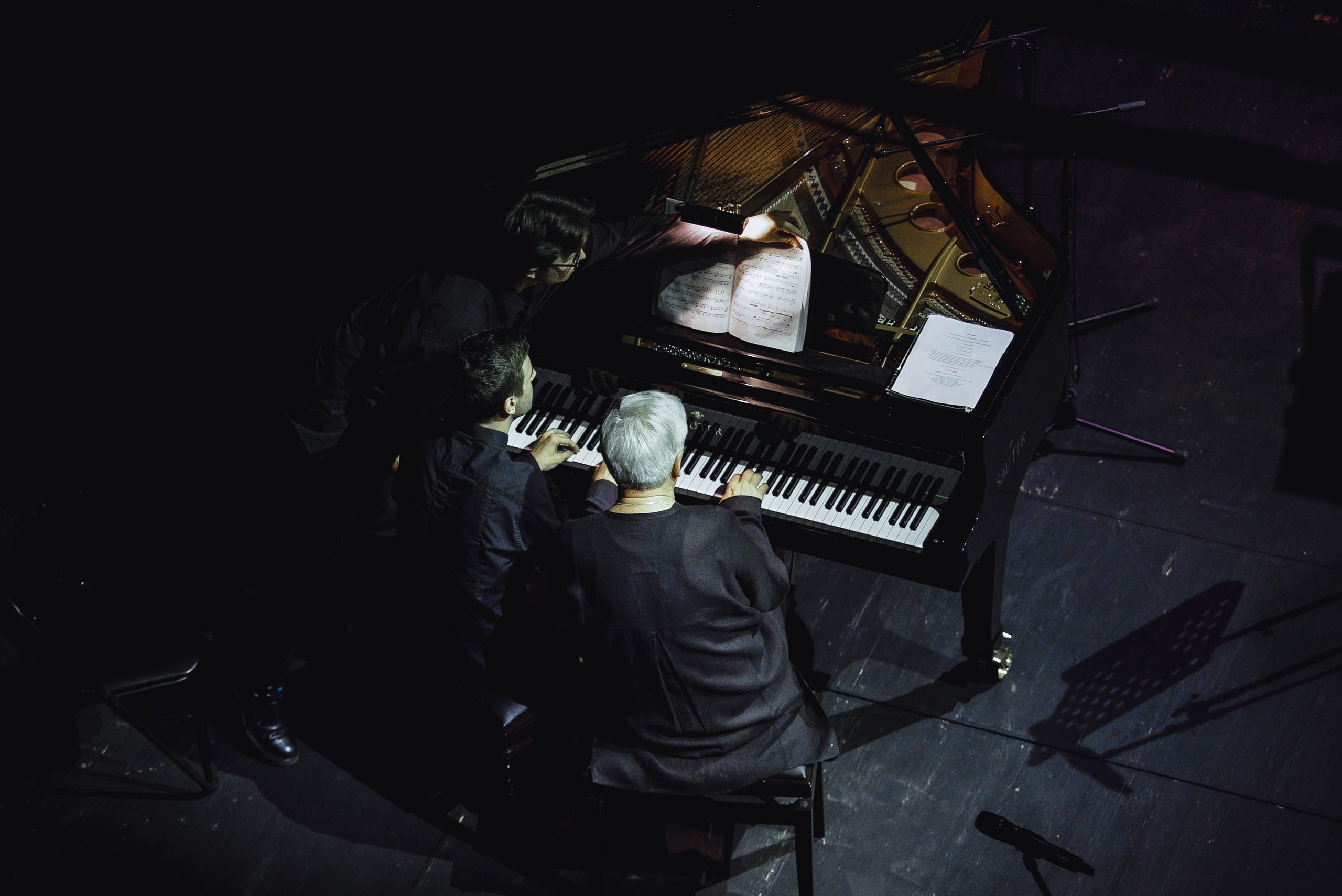 Что и сделали зрители и журналисты, отправившись на двухчастный концерт музыки Леонида Десятникова. В первом отделении бессменный исполнитель сочинений композитора Алексей Гориболь представил фортепианные пьесы из фильмов “Москва”, “Мания Жизели”, “Москва слезам не верит” и “Мишень”. Почти отсутствующая сценография вечера (темная сцена, световой луч на исполнителе и рояле) и нарезка из кинолент на заднике помогли сосредоточиться на аудиальном, а не визуальном.