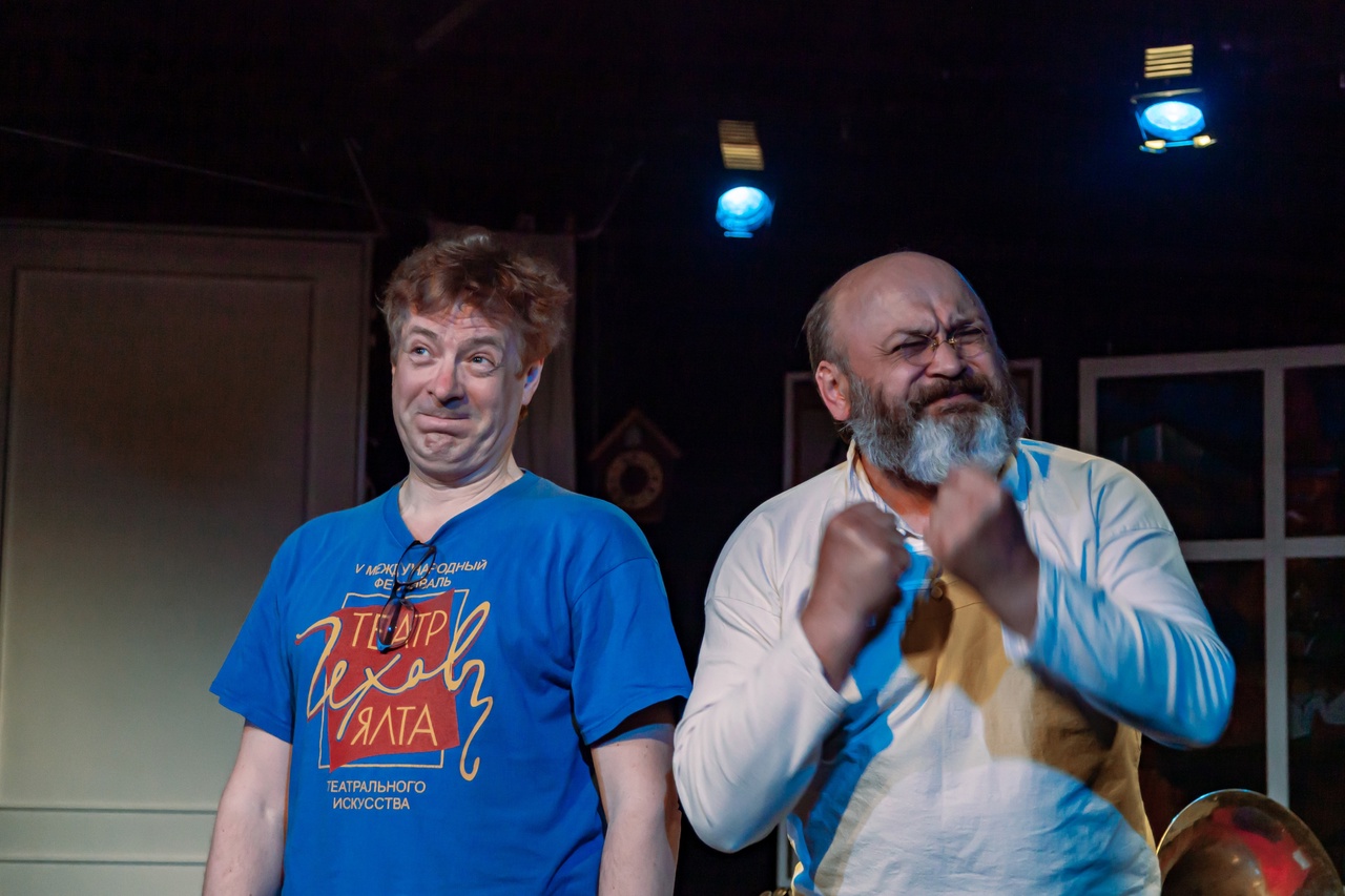 Фотография с репетиции спектакля «Самоубийца». Александр Маков, Иван Кожевников