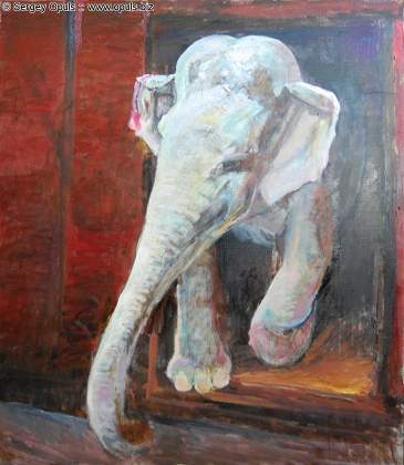 Редким примером анималистической живописи Сергея Опульса является работа «Прибыл из Берлина» (2015). Для художника слон с детства считался символом верности. Часто слоны населяют работы Сергея Опульса, посвященные Востоку, но слон, прибывший с Запада, появился впервые в юбилейный год Великой Победы.