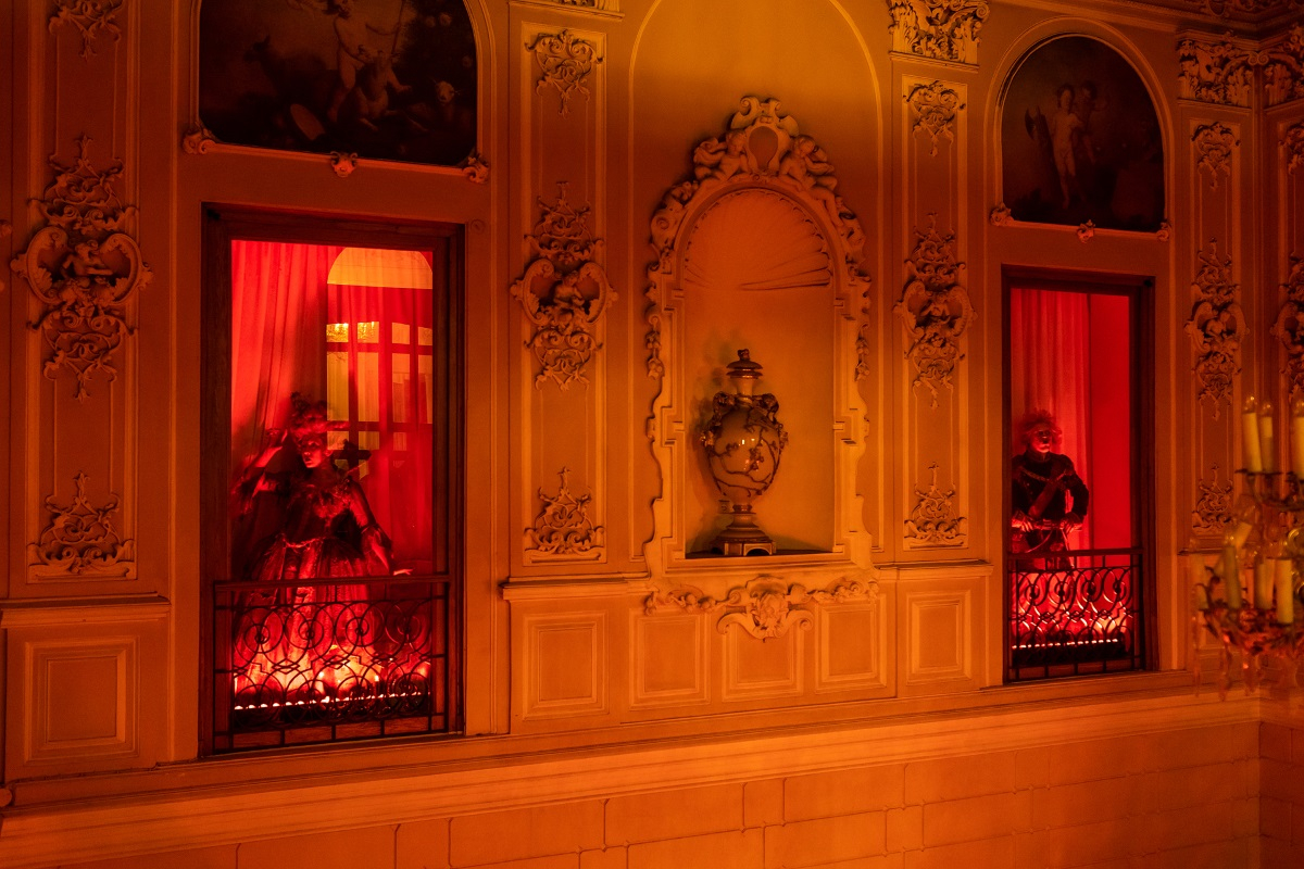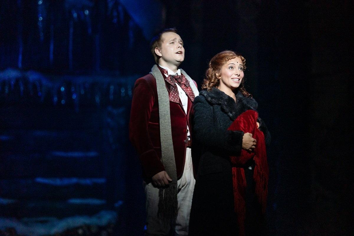 В минувший субботний вечер театр преподнес счастливым обладателям заветных билетов на спектакль уникальный подарок – два состава главных героев. Помимо магнетического Ивана Ожогина и коварного Александра Суханова в роли Графа, участие в юбилейном показе приняли самые первые исполнители ролей Сары и Альфреда – Елена Газаева и Георгий Новицкий, – они выступили наравне с нынешними звёздочками вампирского небосклона – Александрой Каспаровой и Русланом Давиденко. Это был поистине щедрый подарок поклонникам «Бала Вампиров», – ведь, если застать Суханова или Ожогина в рамках этого спектакля можно вполне свободно (разве что не одновременно в одной роли), то насладиться голосами и игрой Елены и Георгия почти не представлялось возможным до этого вечера, ведь они уже несколько лет не заняты в постановке. Когда они вышли в сцене «За горизонтом», то зал встретил их громовыми аплодисментами – давние поклонники вампирской саги узнали их с первых секунд и даже со спины. Было заметно, что им доставляет огромное удовольствие вновь играть в этом мюзикле, их энергия и страстность ощутимыми волнами растекались по залу. Приятно, что их выходы были не единичными, и Газаева блистала в ариях «Красные сапожки», «Молитва» и «Кромешная тьма» – центральной композиции мюзикла, а Новицкий в «Саре», которую он блистательно исполнил в паре с Давиденко. На что Профессор Абронсиус (Андрей Матвеев), увидев двух Альфредов вместе, растерянно сказал, что у него в глазах двоится.