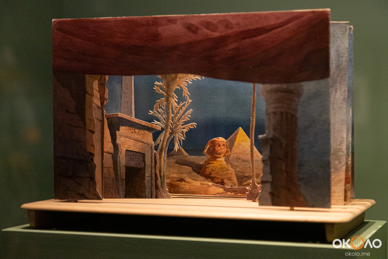 Специфика и сложность в подготовке настоящей выставки в том, что у египтомании нет границ, она пронизывает разные культуры и направления искусства. Организаторы выставки шли по хронологии, с одной стороны, а с другой стороны, по темам, поэтому выставка охватывает нескольких тем: