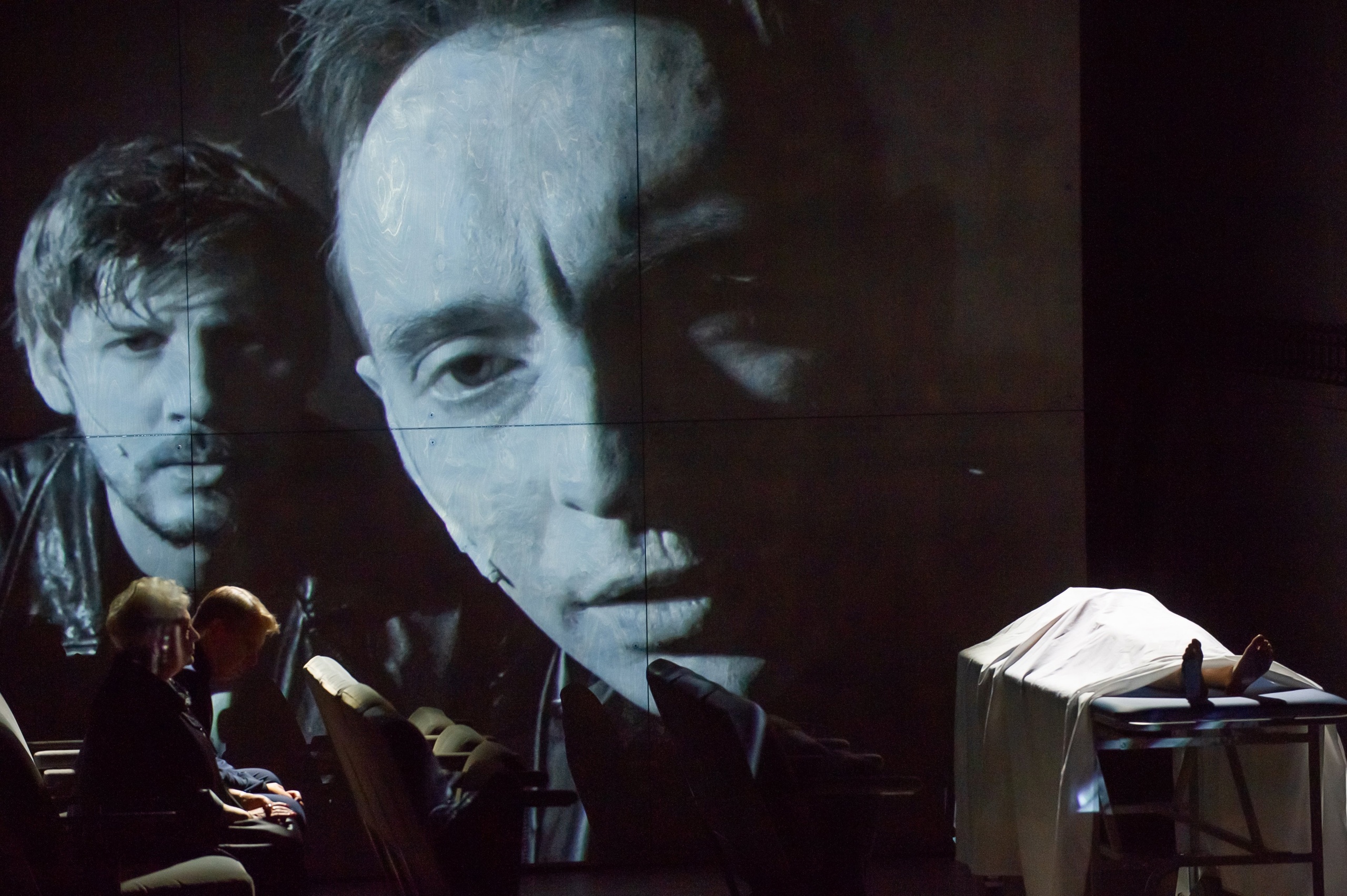 Жанр постановки — сон в трёх действиях, каждое будет посвящено одному персонажу и решено в своей особенной форме. Шерешевский создаёт киноспектакль-блокбастер с излюбленным приёмом — трансляцией в реальном времени и проекцией крупных планов (работа Максима Баскакова), чтобы не пропустить ни малейшего поворота головы, улыбки или взгляда актёров. Он делает повествование нелинейным, вставляет флэшбеки и кучу деталей и пасхалок (от “ПетерБУРГа” Карельского театра драмы до “Киллера Джо” в КТМ), которые считываешь и боишься пропустить, и раскручивает сюжет от финала. По словам Петра Юрьевича, его театр — про телесность. Поэтому как обычно в его постановках герои “Идиота” пьют, едят (откусить шаверму Гани хотелось каждому в зале, голодными идти на спектакль не стоит!), занимаются сексом.